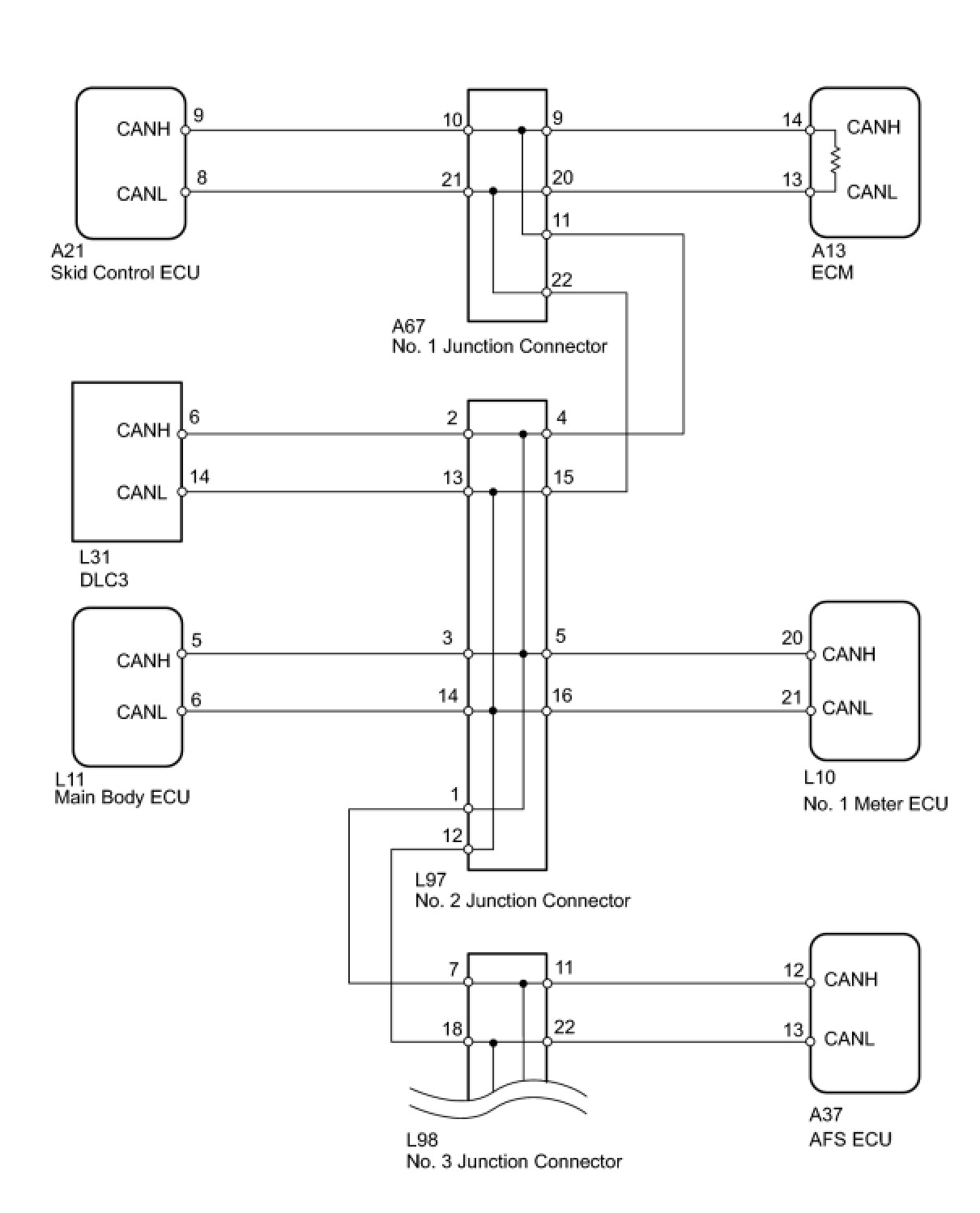 12. CHECK FOR SHORT IN CAN BUS WIRES (NO. 3 JUNCTION CONNECTOR - AFS ECU)