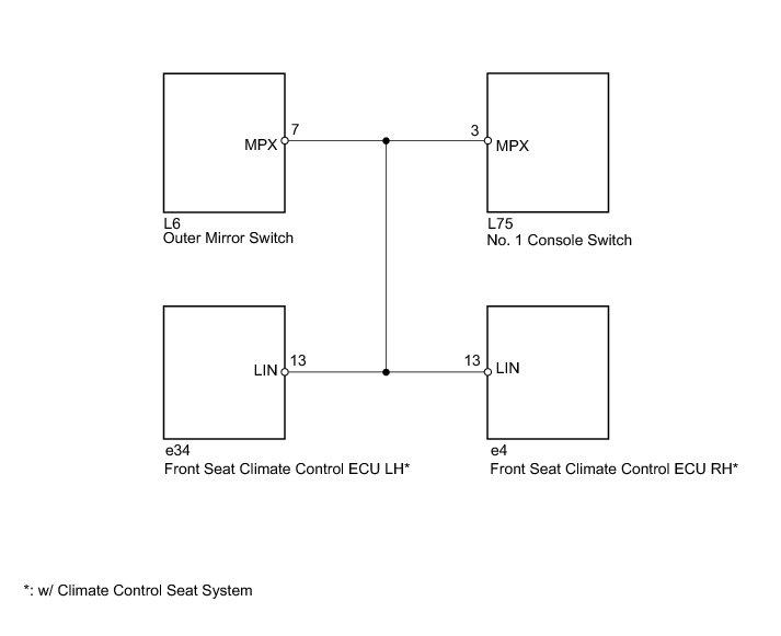 The outer mirror switch monitors the LIN communication bus between the components related to the switches on the driver side seat.