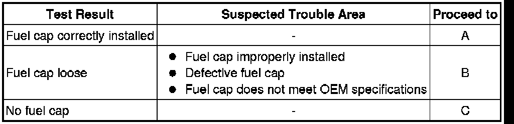 B -- CORRECTLY REINSTALL OR REPLACE FUEL CAP ASSEMBLY