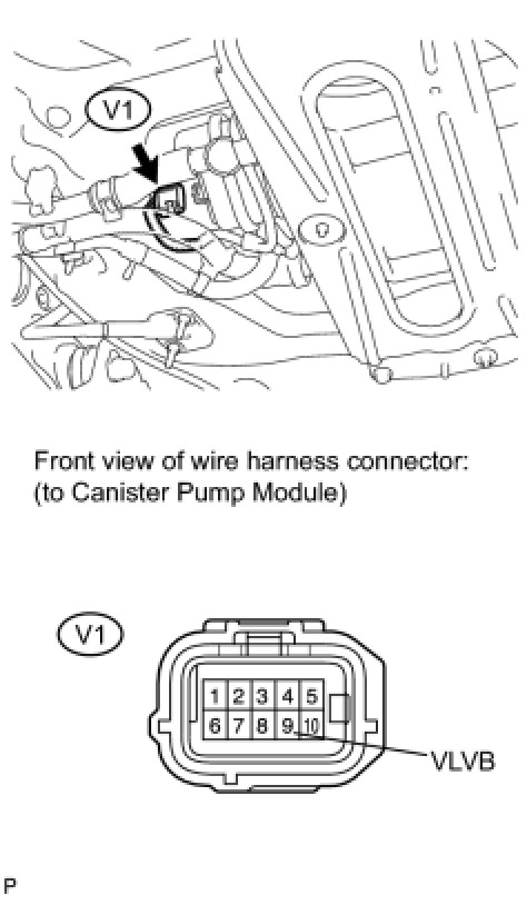 (c) Disconnect the V1 canister pump module connector.
