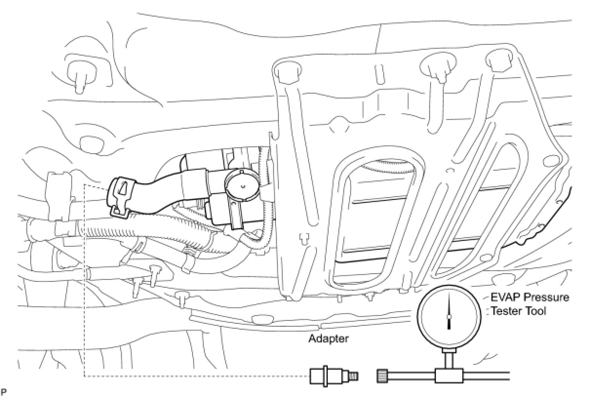 (b) Connect the EVAP pressure tester tool to the canister with the adapter.