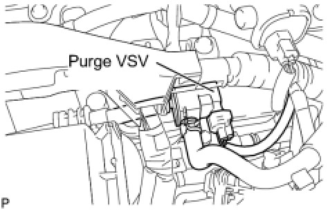 (a) Disconnect the hose (connected to the intake manifold) from the purge VSV.