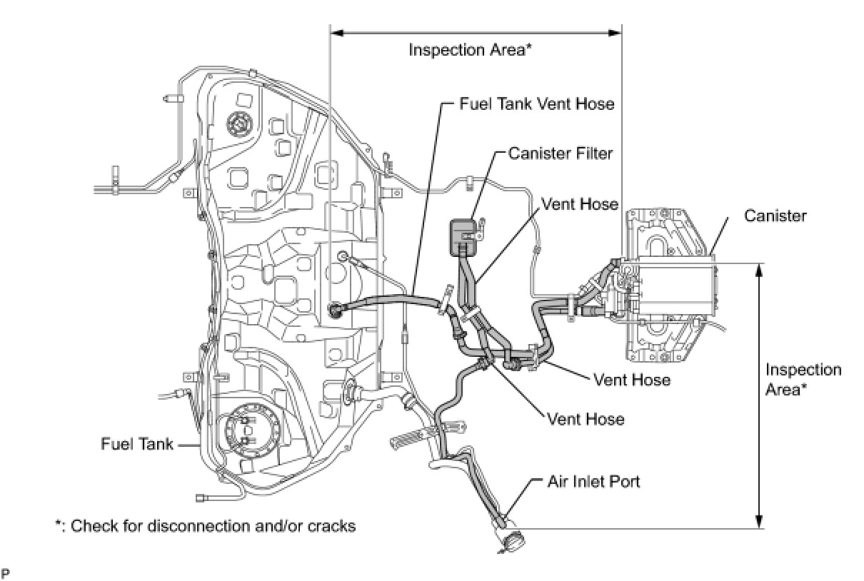 When replacing the canister, check the canister pump module interior and related pipes for water, fuel and other liquids. If liquids are present, check for disconnections and/or cracks in the following: 1) the pipe from the air inlet port to the canister pump module; 2) the canister filter; and 3) the fuel tank vent hose.
