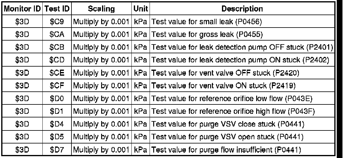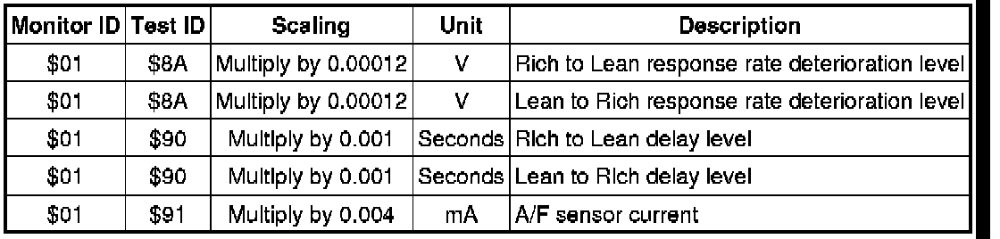 If you use a generic scan tool, multiply the value by the scaling value listed below.