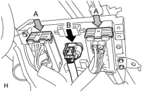(a) Connect the 2 connectors (labeled A) and press the lock levers down to lock the connectors.