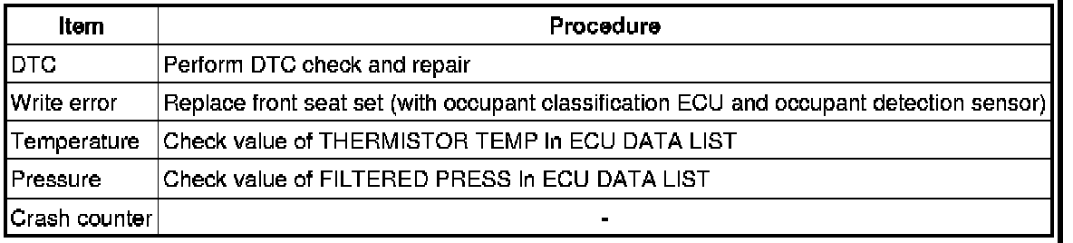 * If After Exchange is selected before the previous ECU data are stored in the Techstream, the display screen returns to CONDITION SELECT ECU: Occupant Detect.