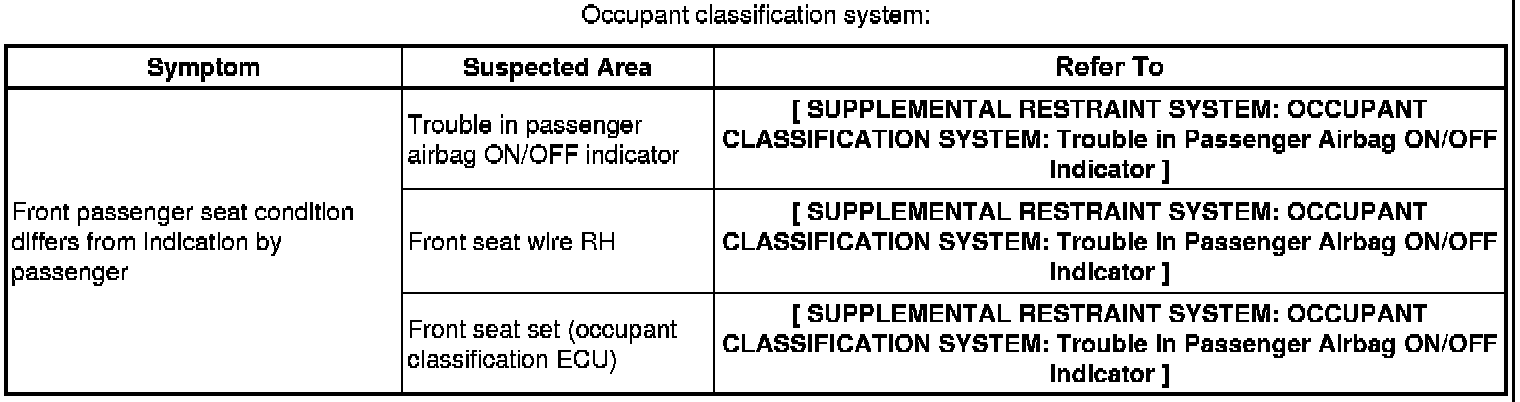 SUPPLEMENTAL RESTRAINT SYSTEM: OCCUPANT CLASSIFICATION SYSTEM: PROBLEM SYMPTOMS TABLE