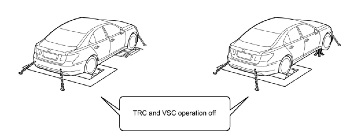 * When switching to VSC OFF mode, the VSC OFF switch must be held for 3 seconds or more with the vehicle stopped. TRC and VSC operation must both be turned off before beginning testing.