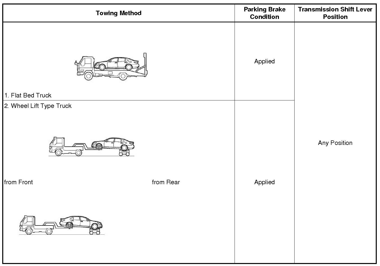 (1) If the vehicle has trouble in the chassis and drive train, use method 1 (flat bed truck).