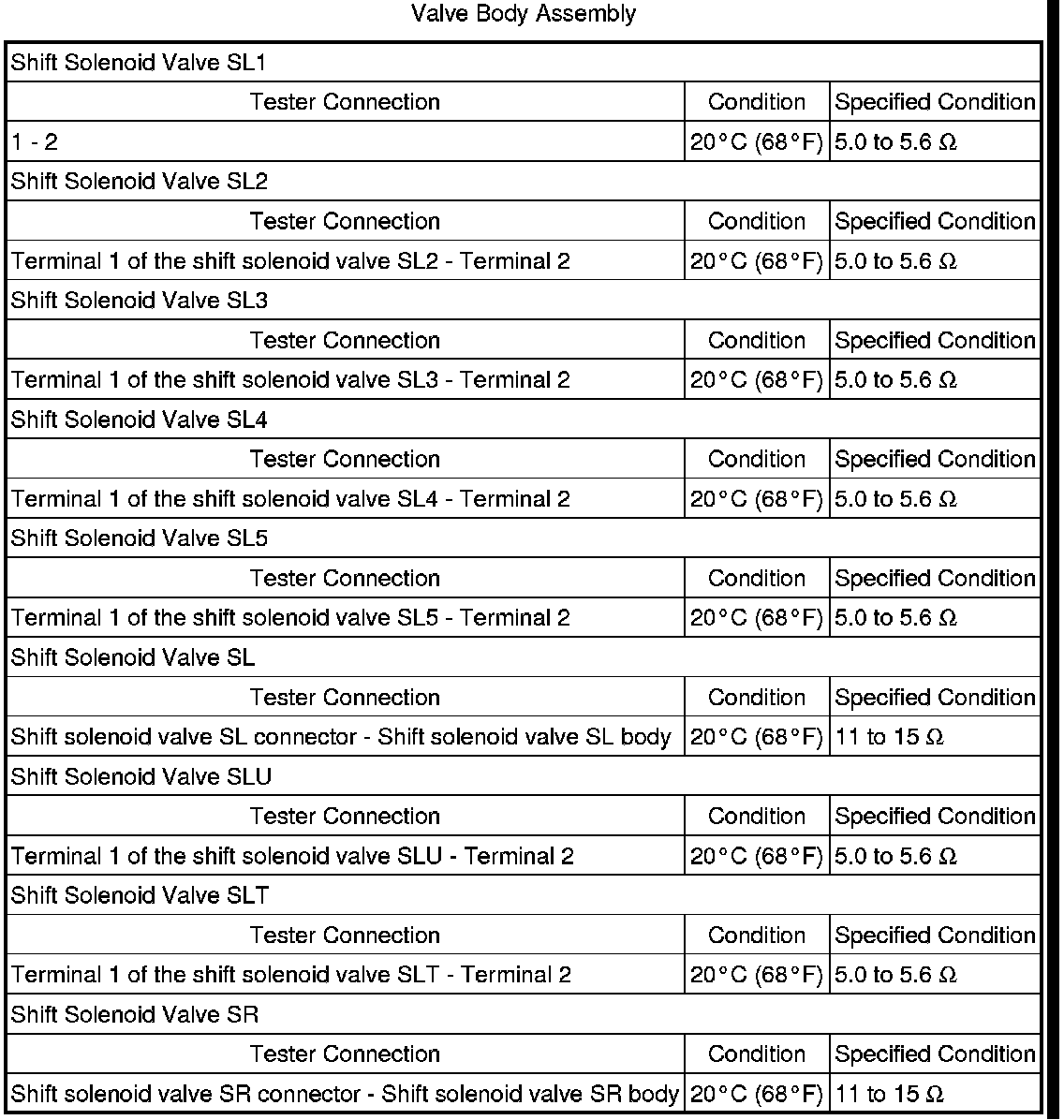 SERVICE SPECIFICATIONS: AA80F AUTOMATIC TRANSMISSION: SERVICE DATA