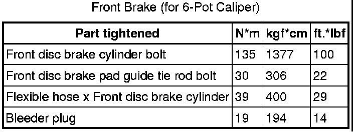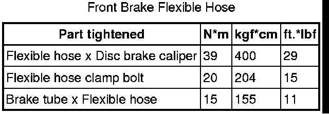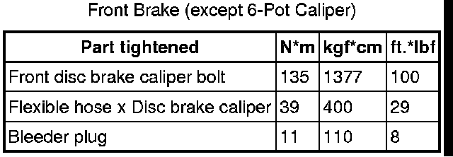 SERVICE SPECIFICATIONS: BRAKE: TORQUE SPECIFICATIONS