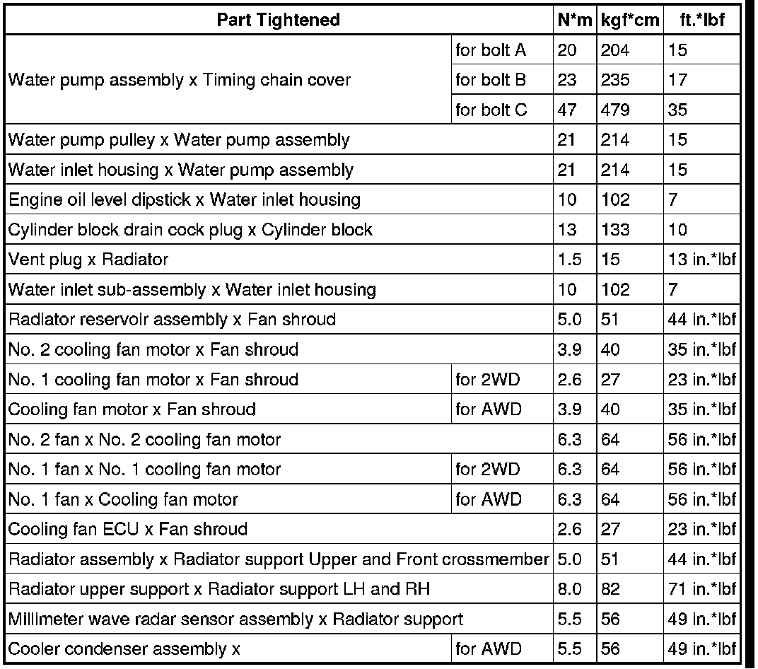 SERVICE SPECIFICATIONS: 1UR-FSE COOLING: TORQUE SPECIFICATIONS