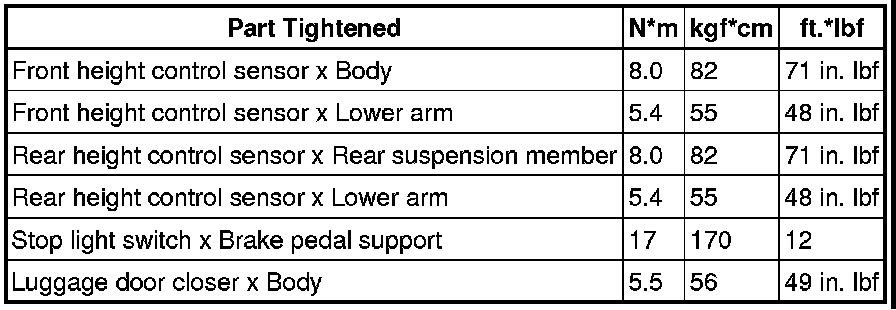 SERVICE SPECIFICATIONS: LIGHTING: TORQUE SPECIFICATIONS