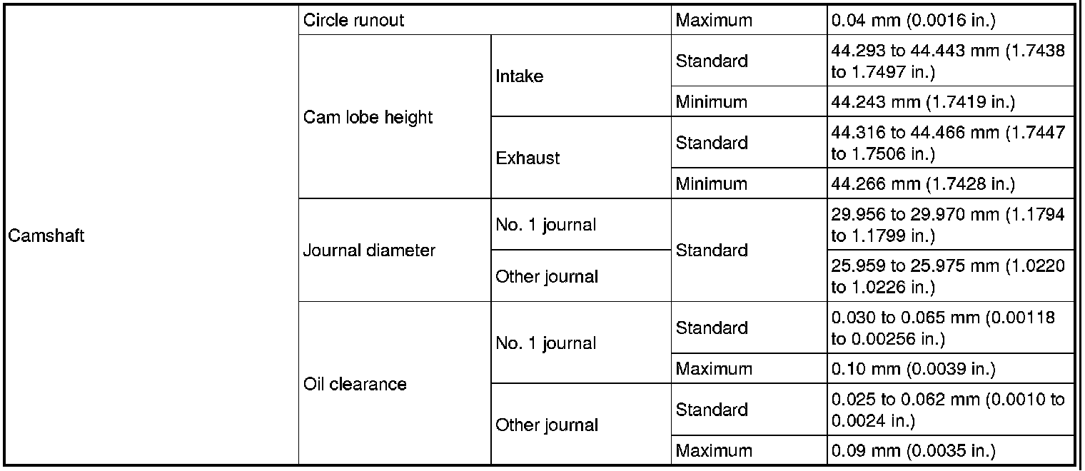 SERVICE SPECIFICATIONS: 1UR-FSE ENGINE MECHANICAL: SERVICE DATA