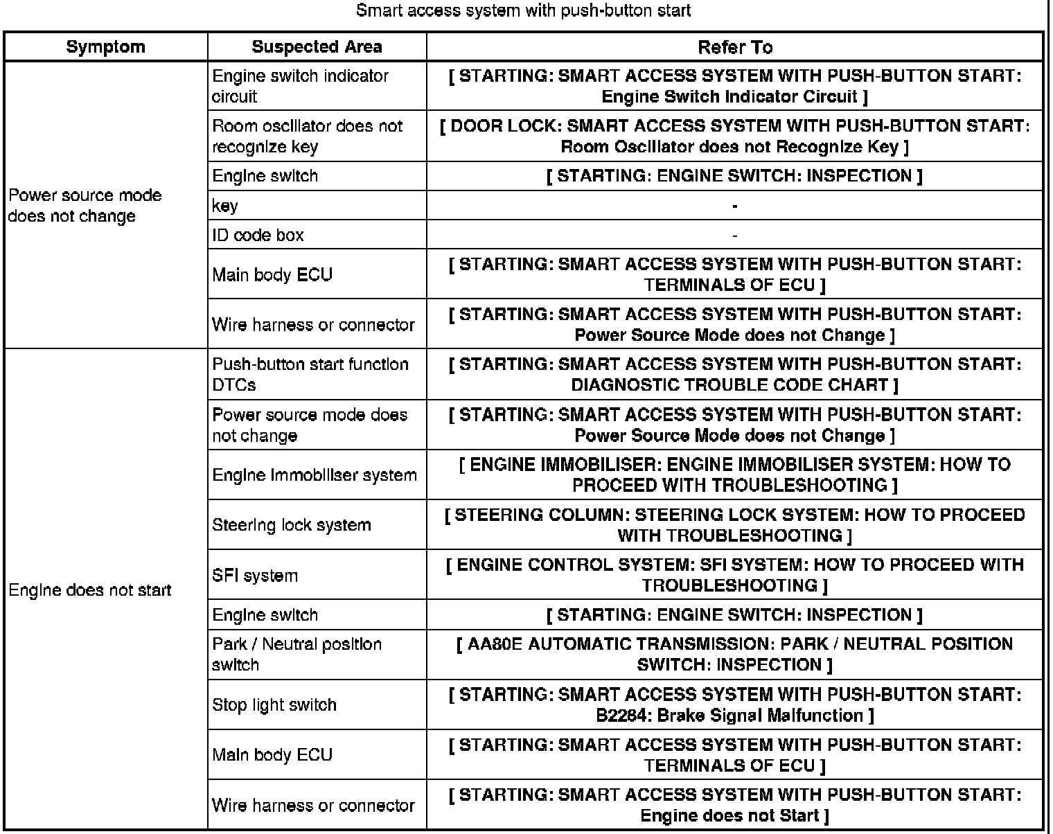 1UR-FSE STARTING: SMART ACCESS SYSTEM WITH PUSH-BUTTON START: PROBLEM SYMPTOMS TABLE