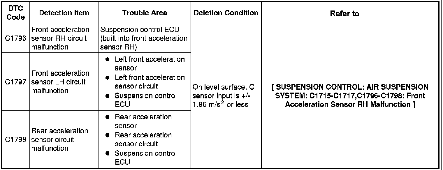 * After completing the test mode for each check item, the test mode DTCs that are determined to be normal by the suspension control ECU will be erased.