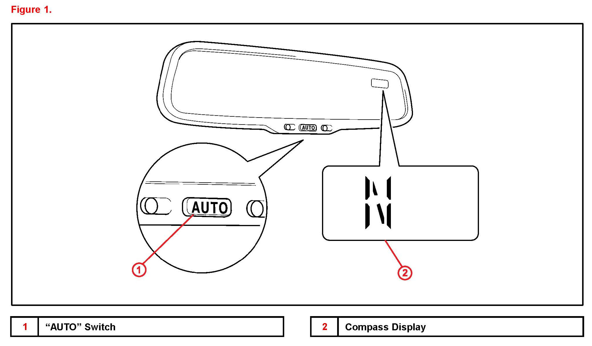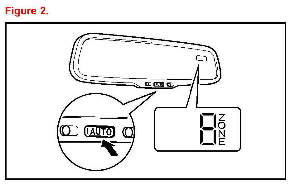 2. Push and hold the "AUTO" switch on the mirror for at least 6 seconds until the zone number appears on the compass display.