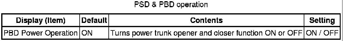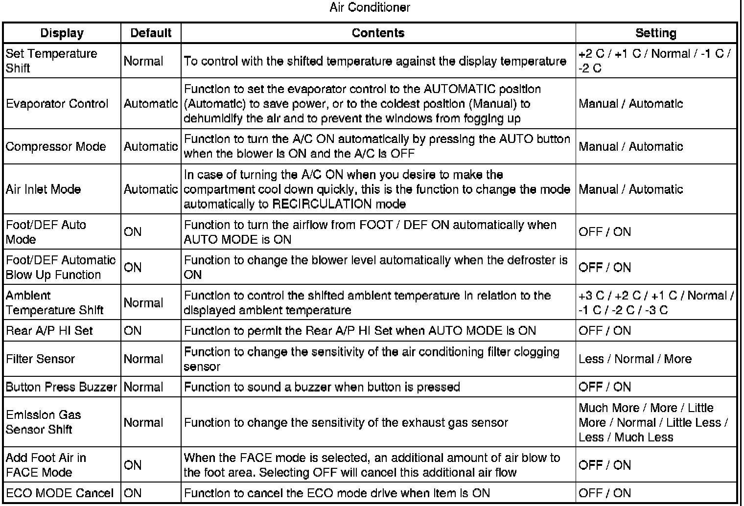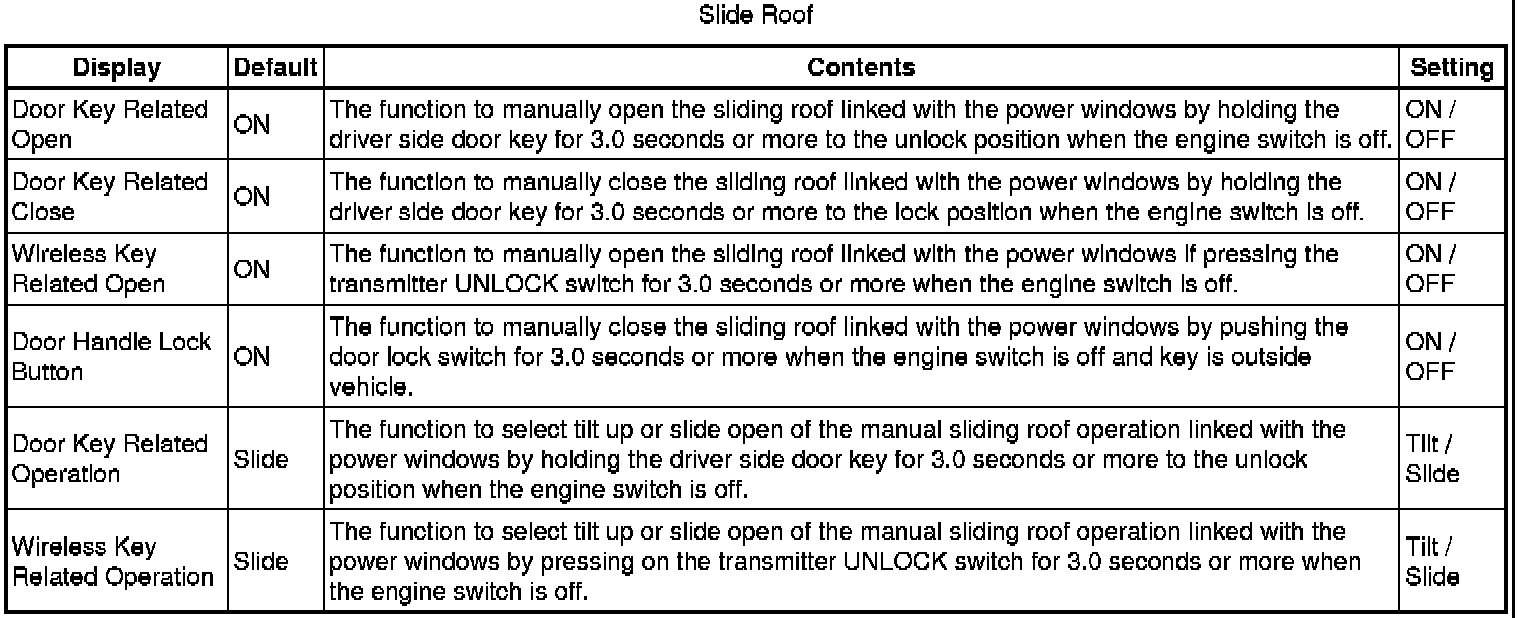 When the switches are pressed and held for 5 seconds, the entry door unlock mode changes in the following order: driver door unlock mode, one door unlock mode, doors on one side unlock mode, all door unlock mode.