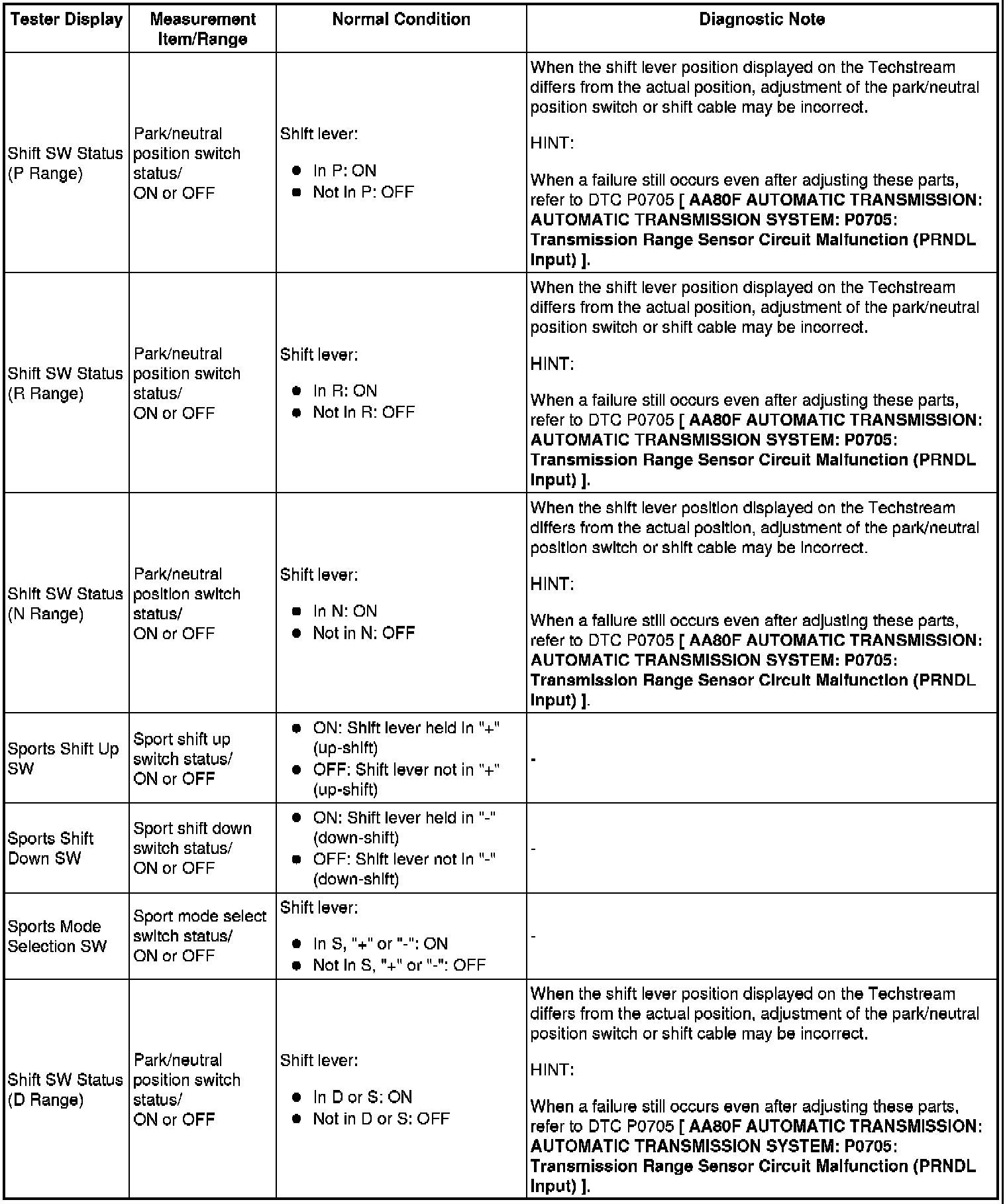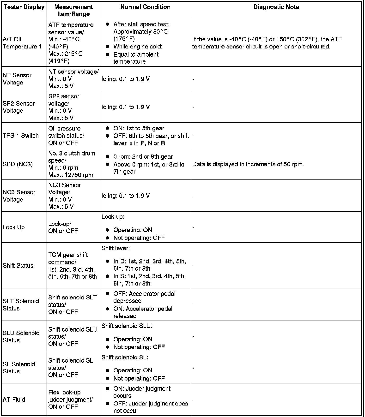 AA80F AUTOMATIC TRANSMISSION: AUTOMATIC TRANSMISSION SYSTEM: DATA LIST / ACTIVE TEST