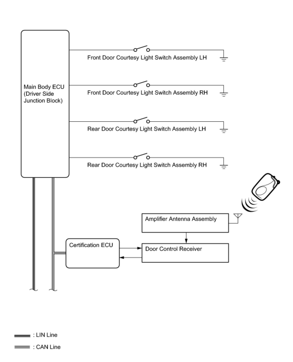 * An ECU is built into the power window regulator motor assembly.