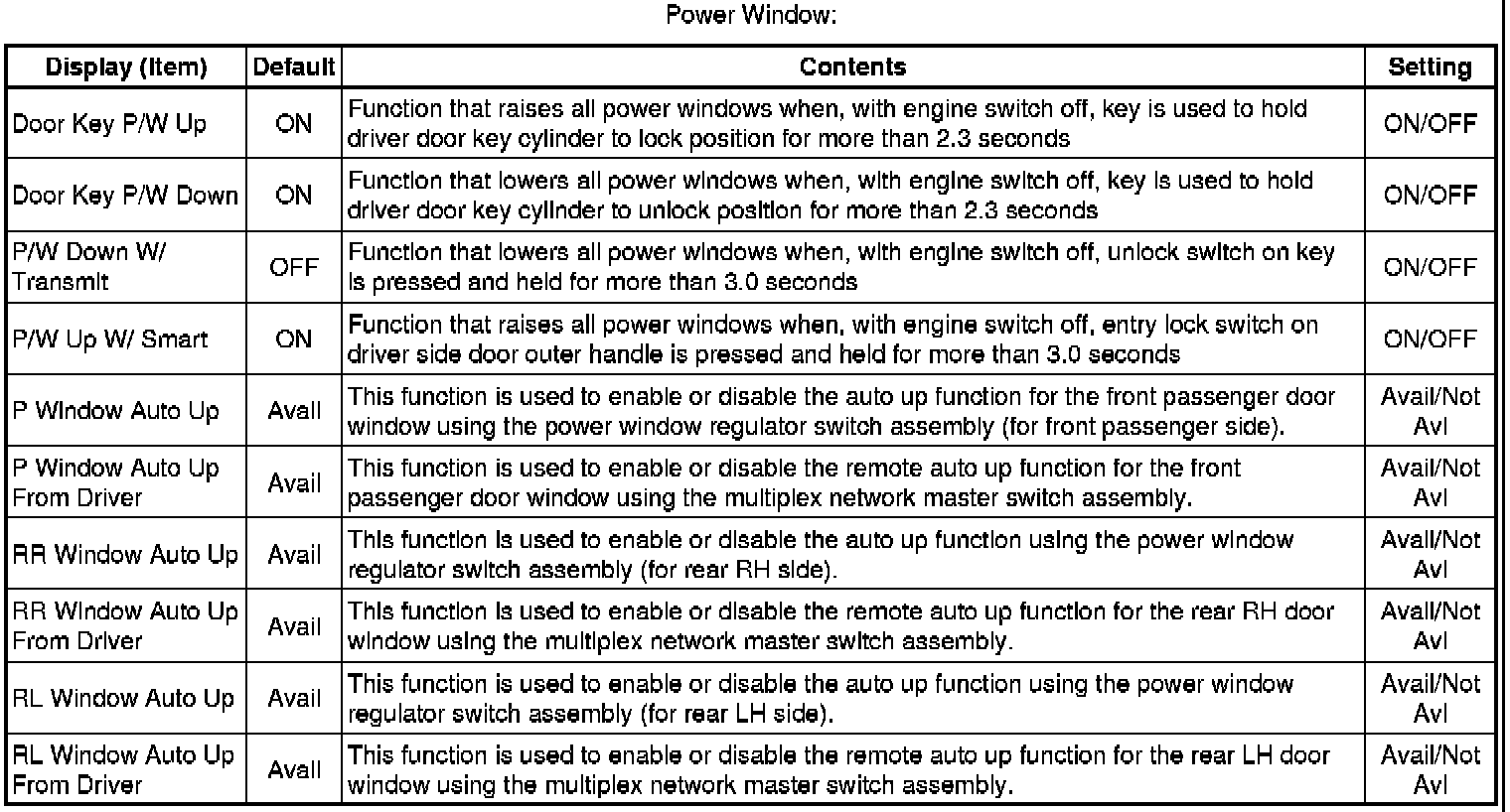WINDSHIELD / WINDOW GLASS: POWER WINDOW CONTROL SYSTEM: CUSTOMIZE PARAMETERS