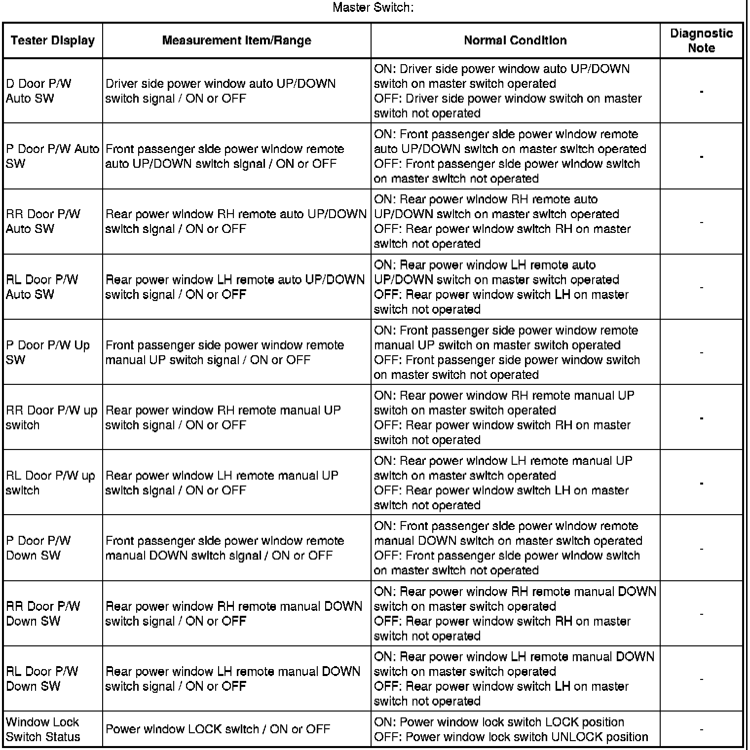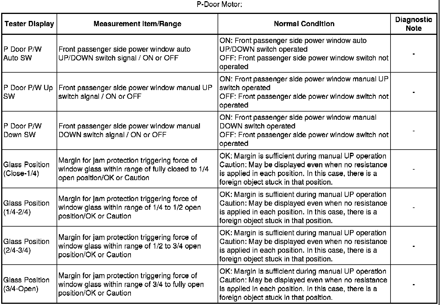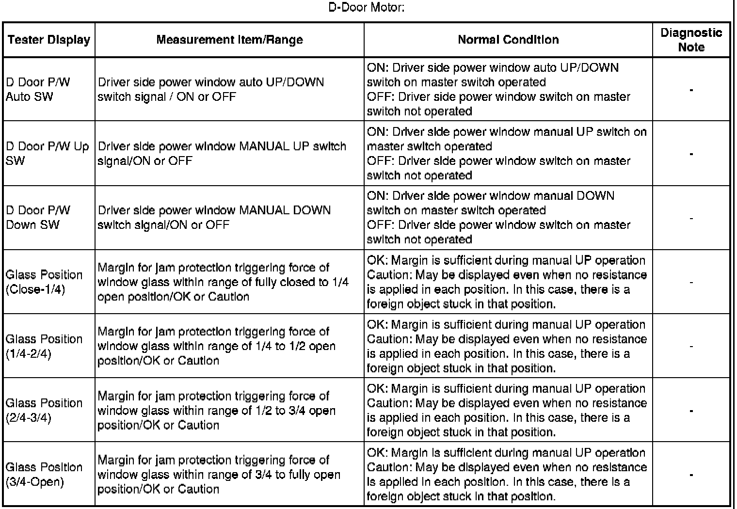 WINDSHIELD / WINDOW GLASS: POWER WINDOW CONTROL SYSTEM: DATA LIST / ACTIVE TEST