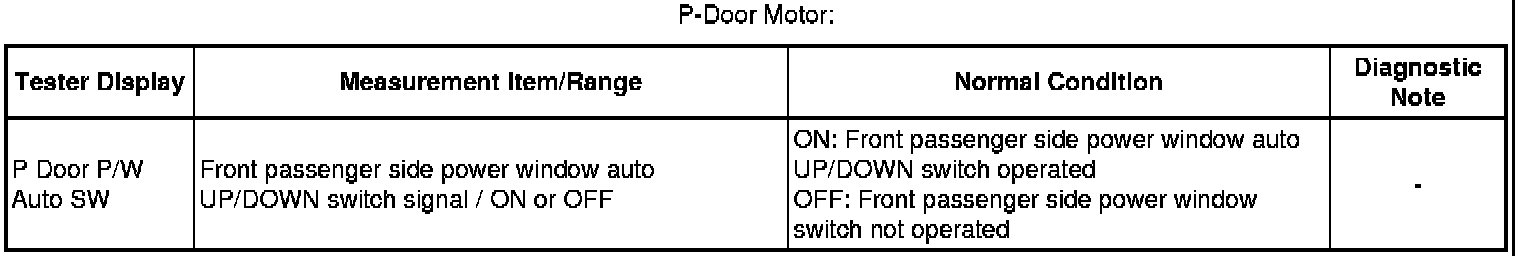 - Front Passenger Side Power Window Auto Up / Down Function does not Operate with Front Passenger Side Power Window Switch