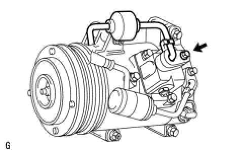 (a) Remove the bolt and disconnect the cooler refrigerant suction hose from the cooler compressor.