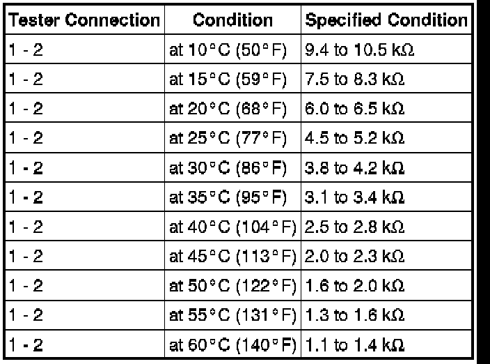 * When measuring the resistance, the sensor temperature must be the same as the ambient temperature.