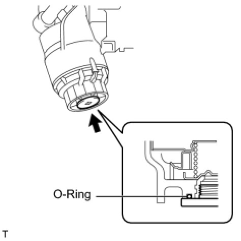 (b) Apply a small amount of engine oil to a new O-ring and install it to the oil filter cap.