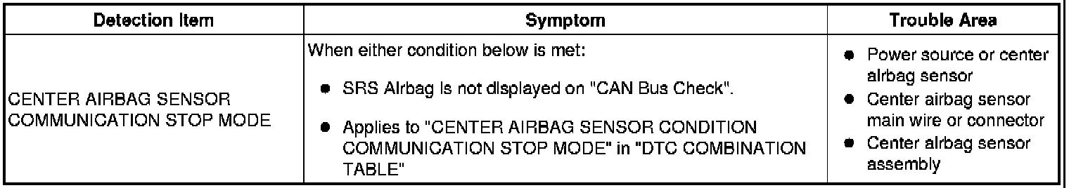 CAN COMMUNICATION: CAN COMMUNICATION SYSTEM: Center Airbag Sensor Communication Stop Mode