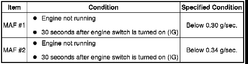 (4) If the result is not as specified, replace the mass air flow meter sub-assembly.