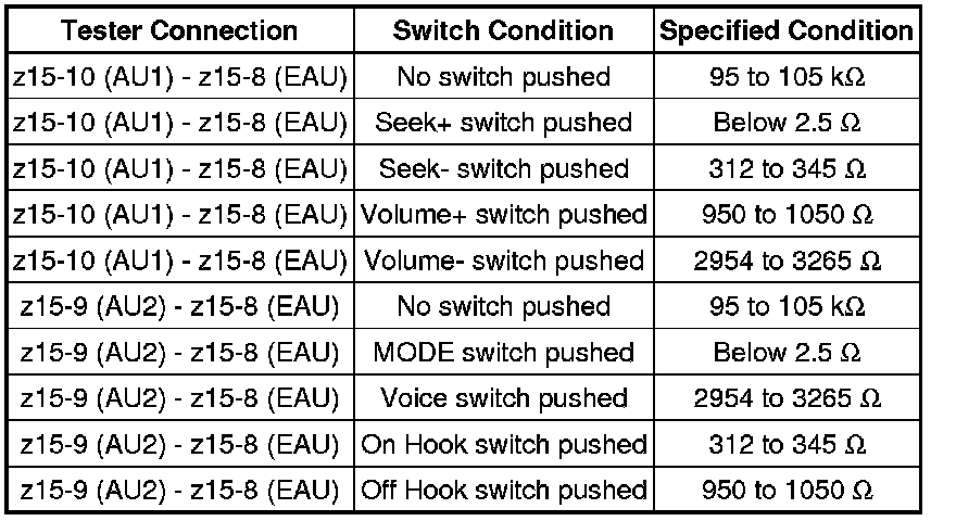 AUDIO / VISUAL: STEERING PAD SWITCH: INSPECTION