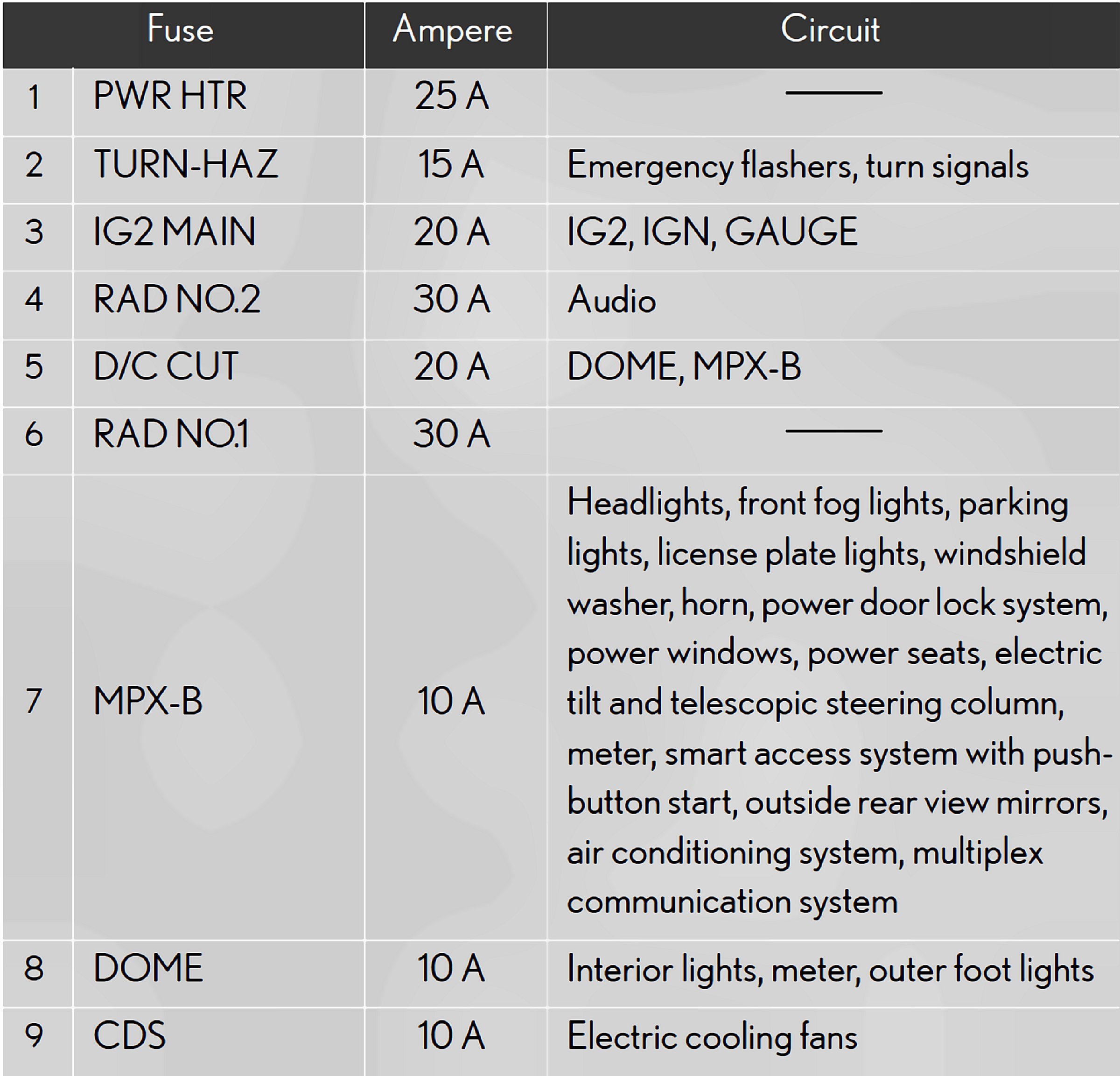Fuses 1-9: