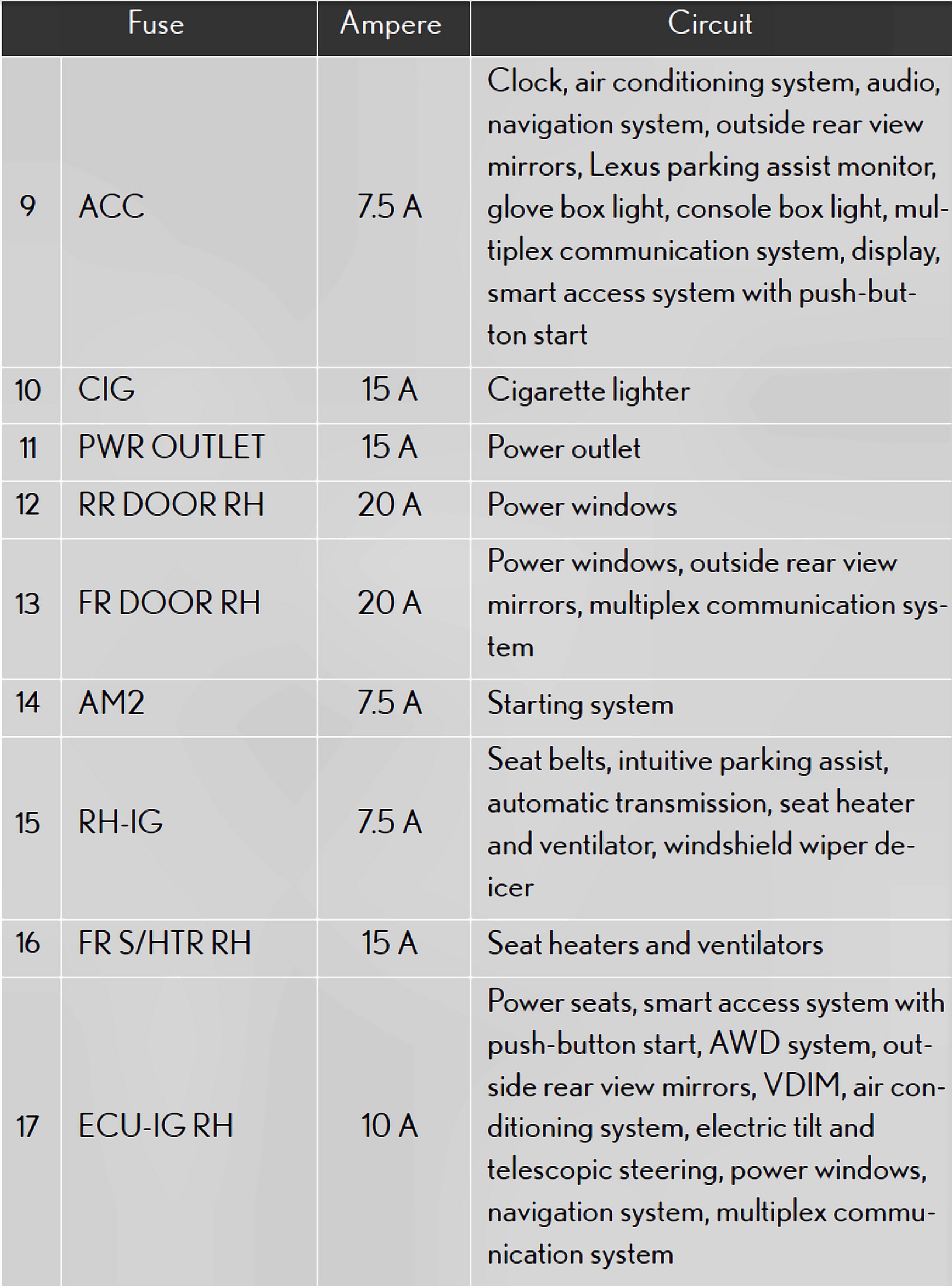 Fuses 8-17: