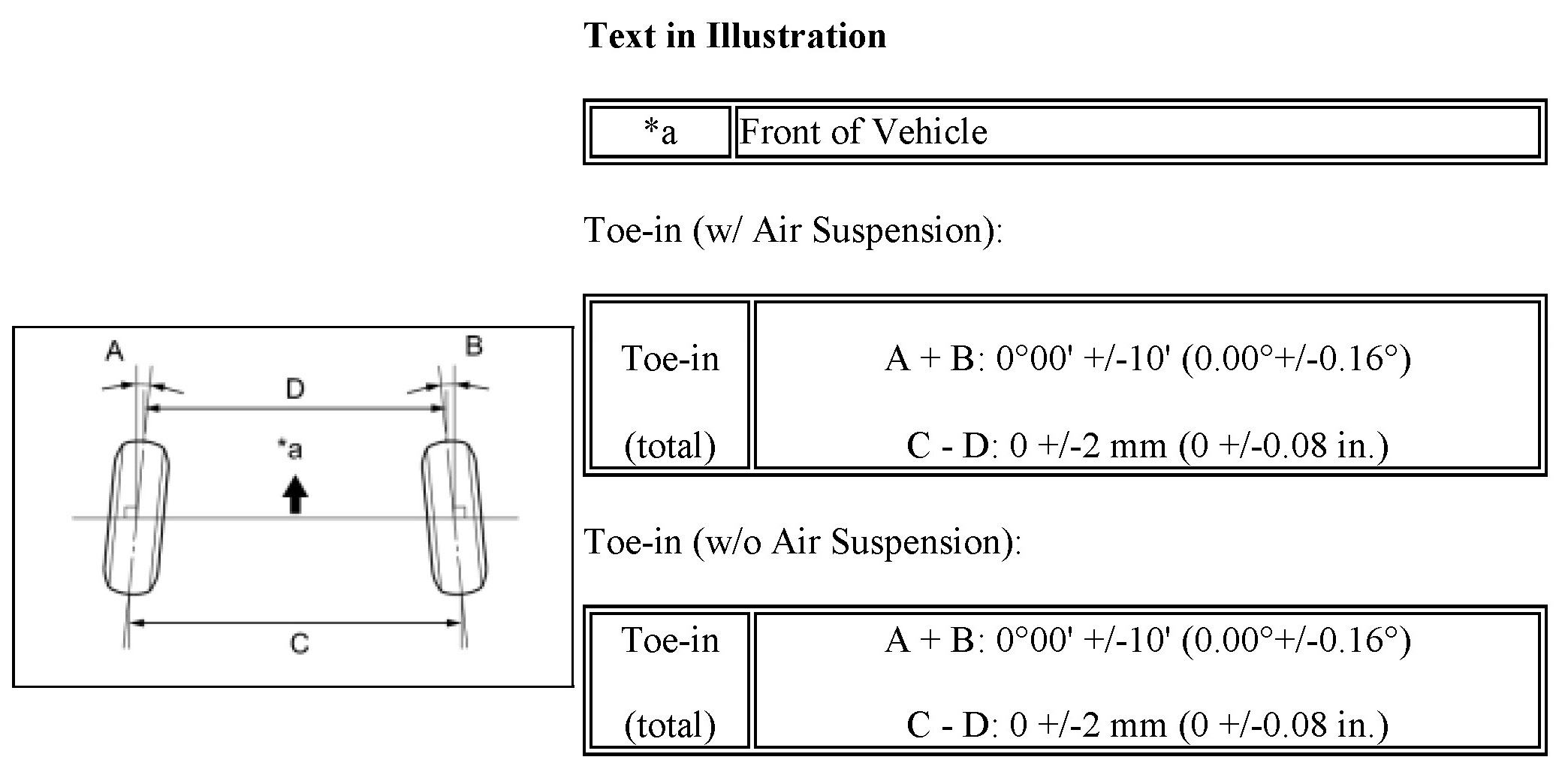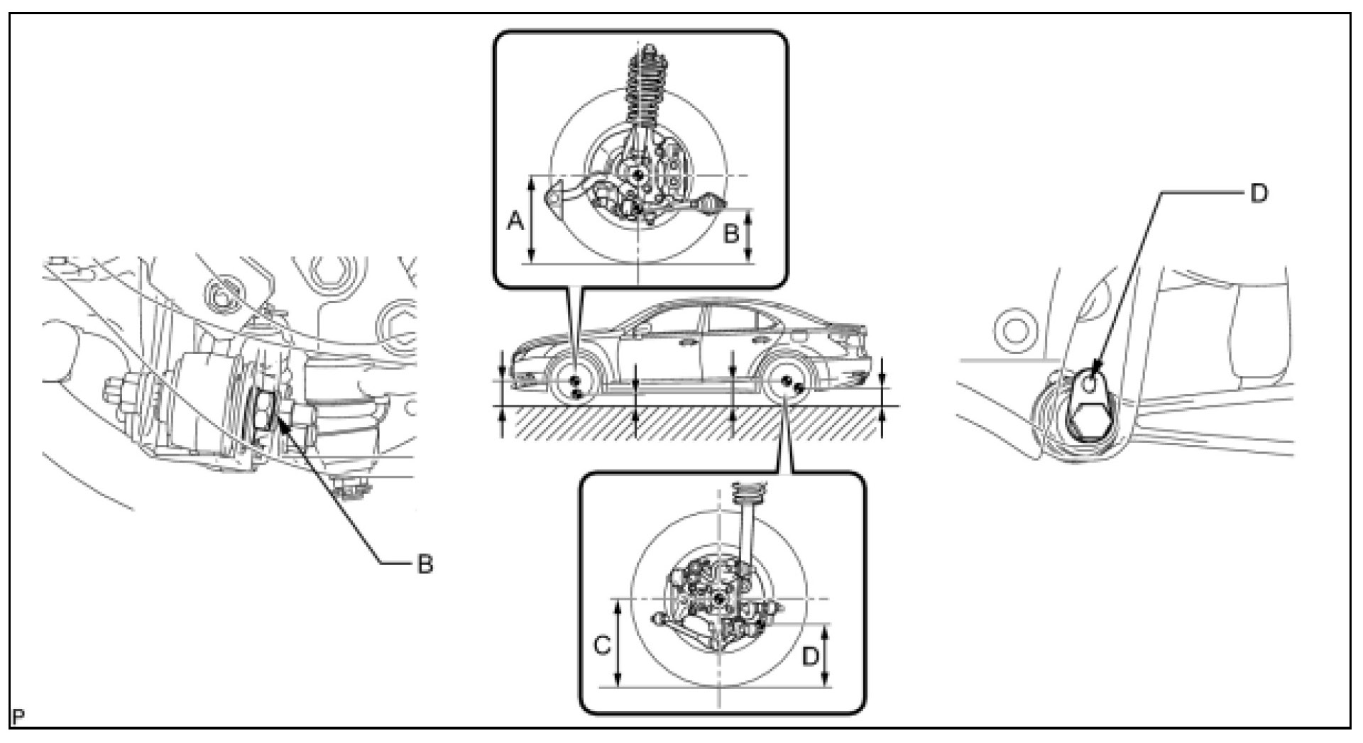 - The standard value shown here is a value that is used for adjusting the wheel alignment and does not indicate the height of an actual vehicle.