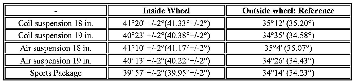 Standard wheel turning angle: