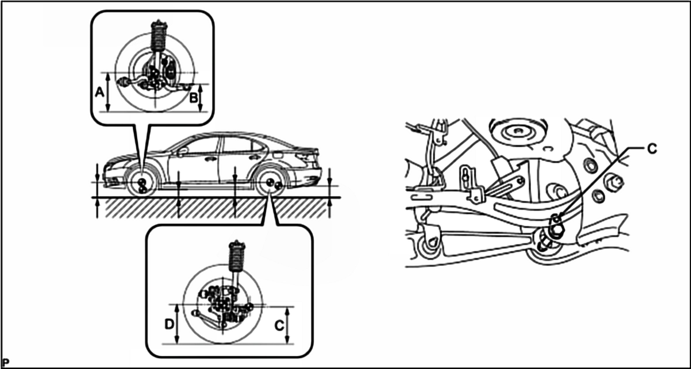 - If the vehicle height is not as specified, adjust the height by pressing down on the vehicle several times to stabilize the suspension.