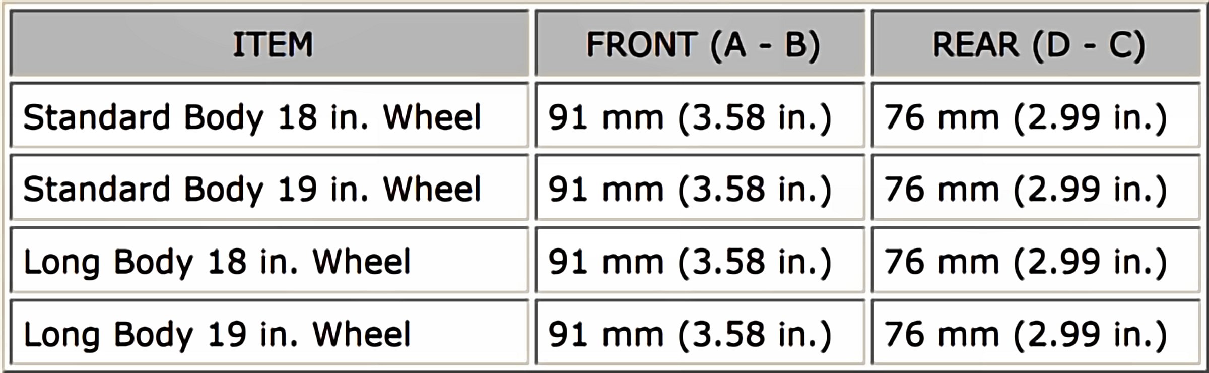 Ground clearance of rear wheel center