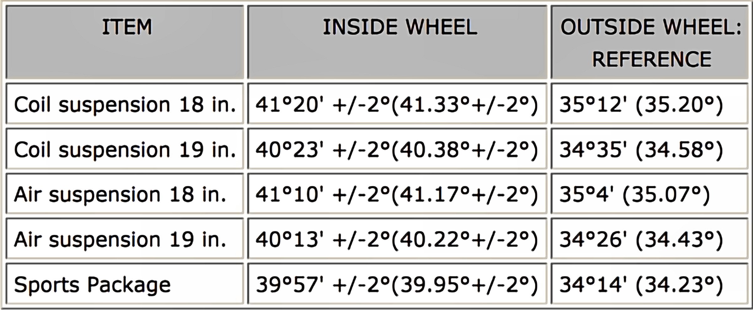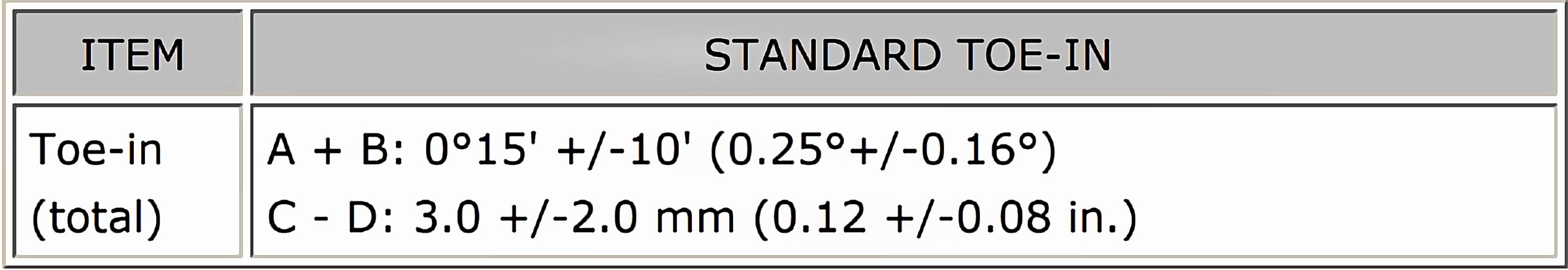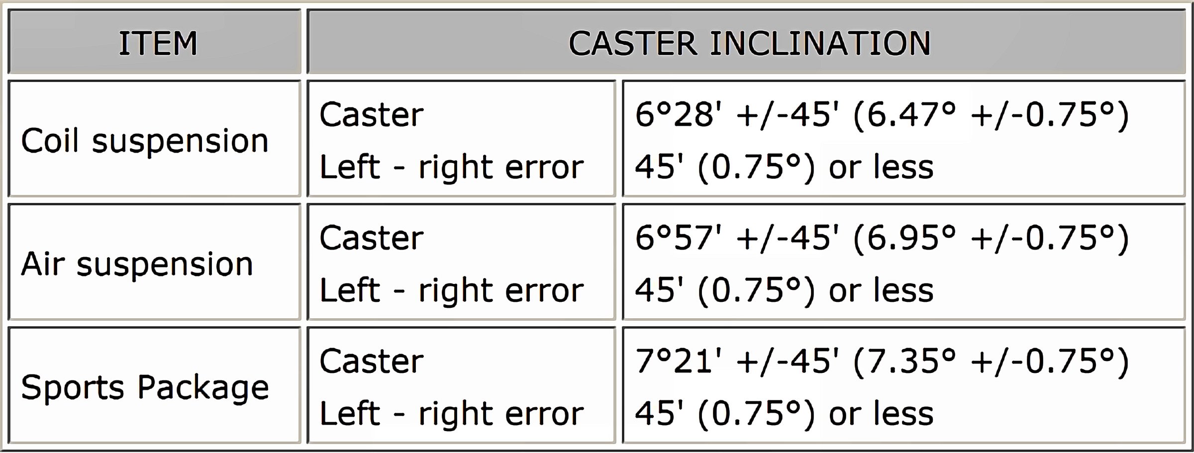 Wheel Alignment Specifications (Unloaded)