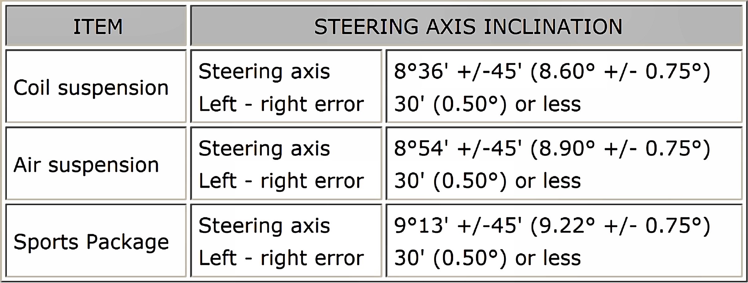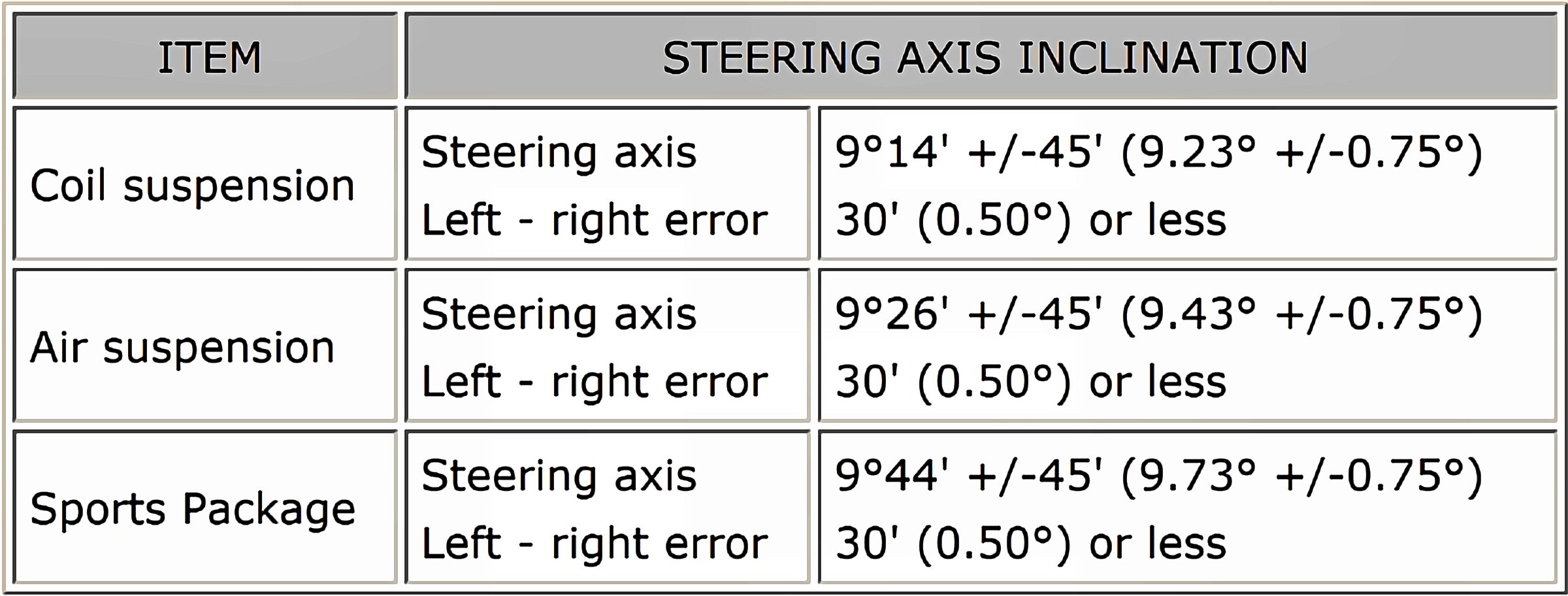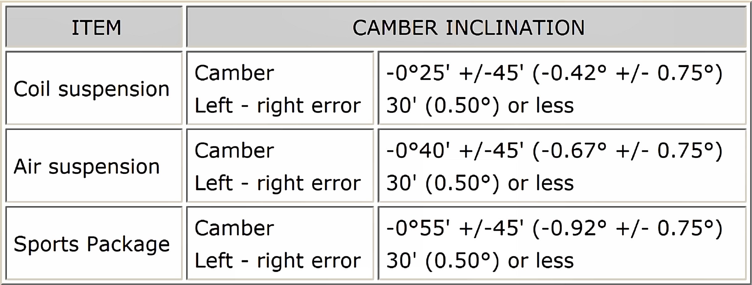 Wheel Alignment Specifications (Unloaded)
