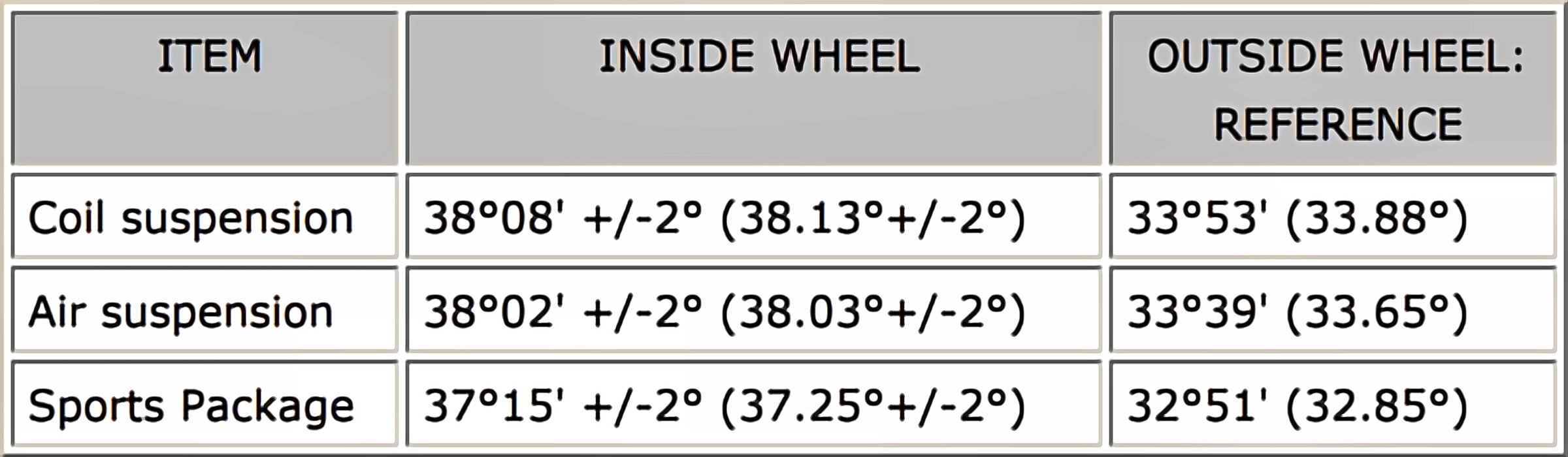 - The standard value shown here is a value that is used for adjusting the wheel alignment and does not indicate the height of an actual vehicle.