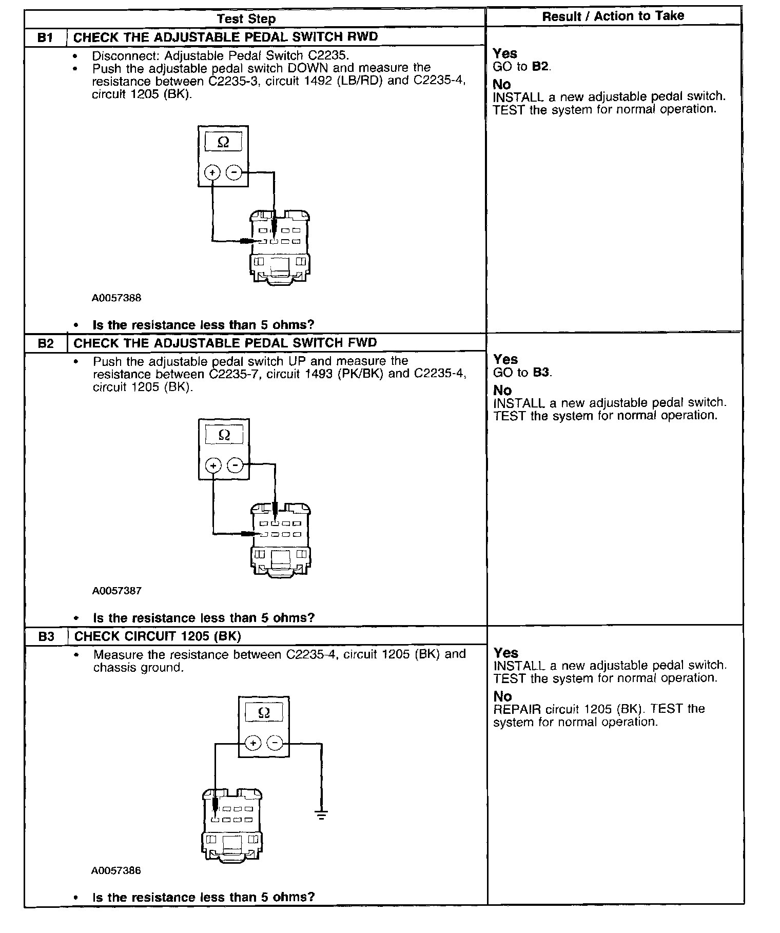 PINPOINT TEST B: MANUAL SWITCH DOES NOT MOVE THE ADJUSTABLE PEDALS - MEMORY IS FUNCTIONALTest B1-B3: