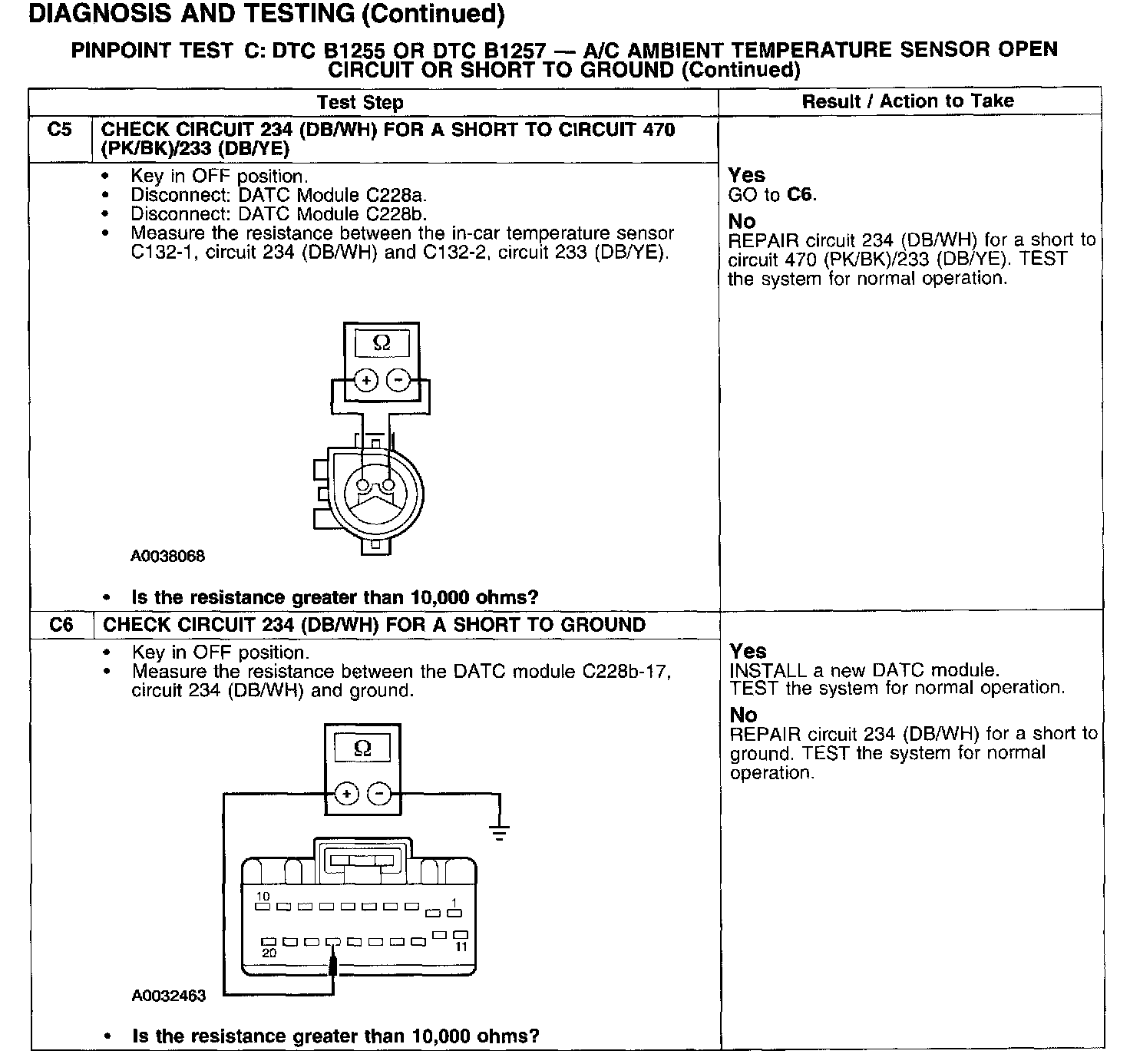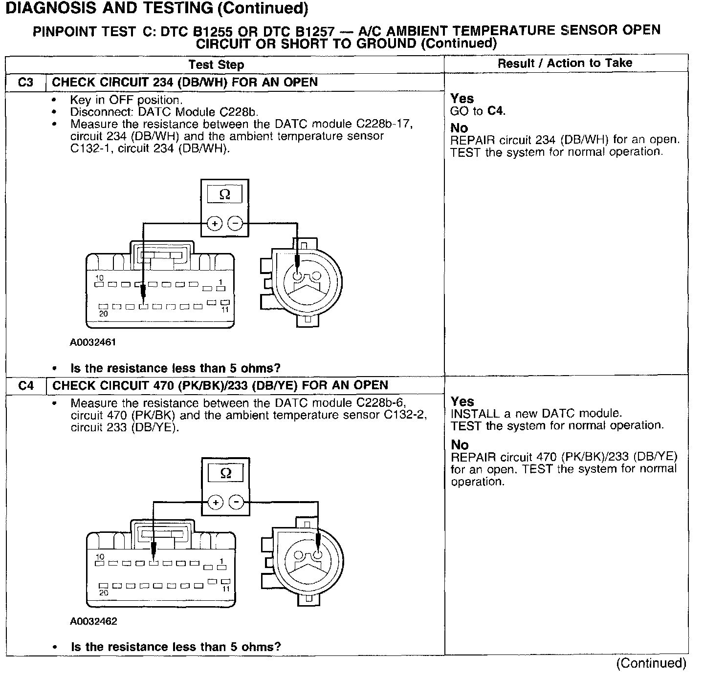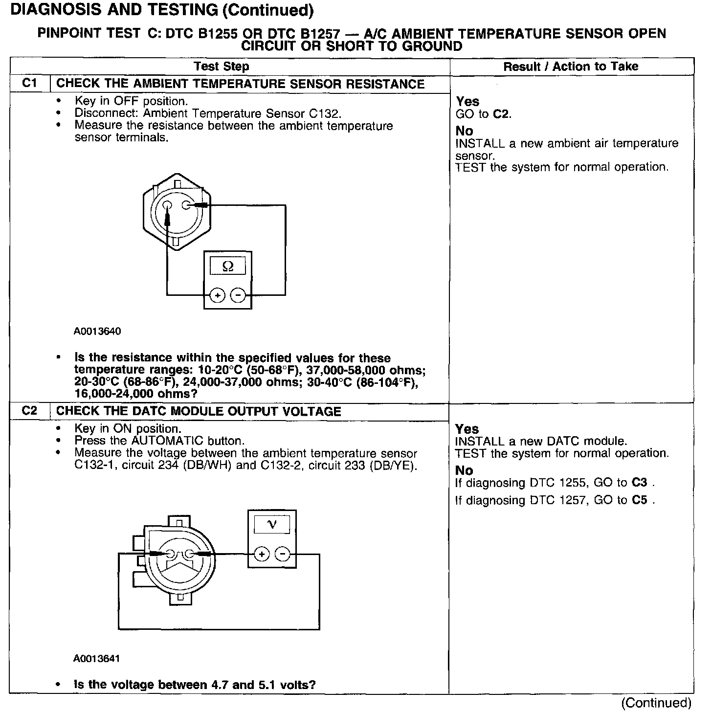 PINPOINT TEST C: DTC B1255 OR DTC B1257 - A/C AMBIENT TEMPERATURE SENSOR OPEN CIRCUIT OR SHORT TO GROUNDTest C1-C2: