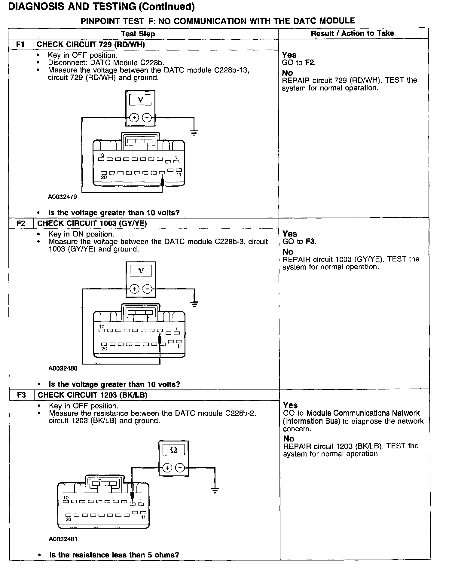 PINPOINT TEST F: NO COMMUNICATION WITH THE DATC MODULETest F1-F3:
