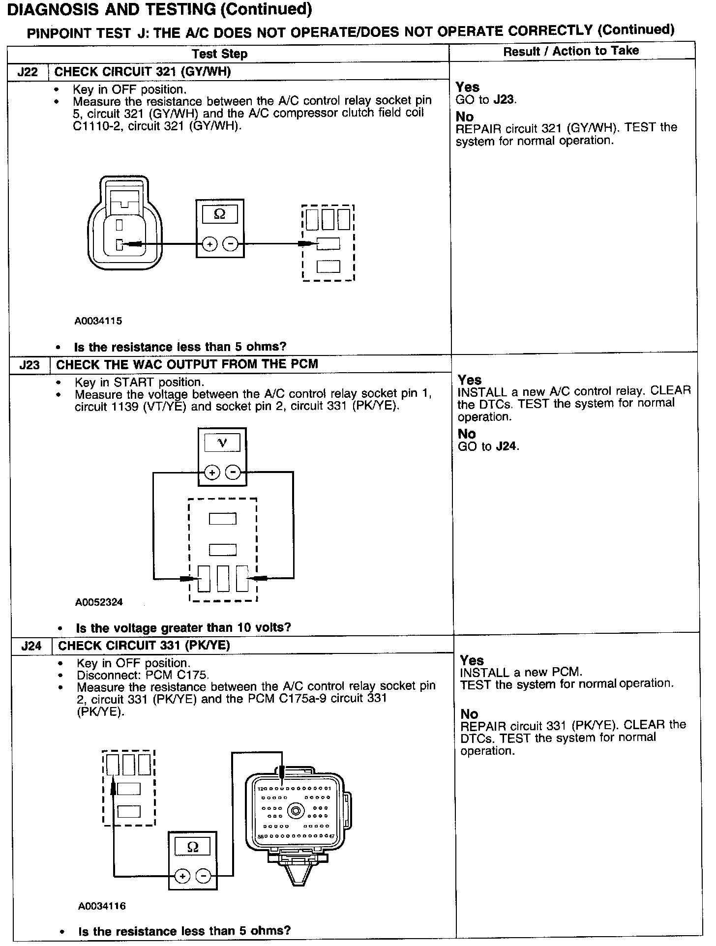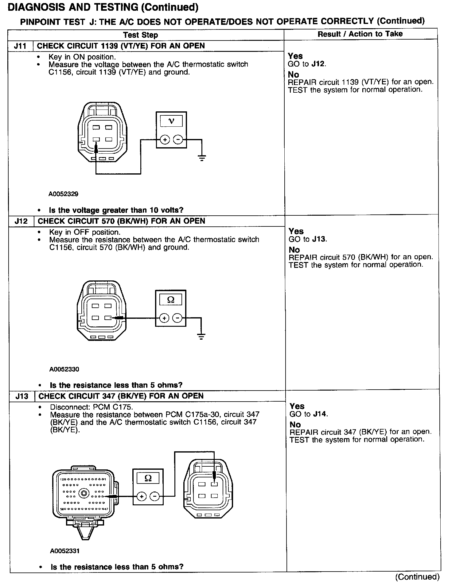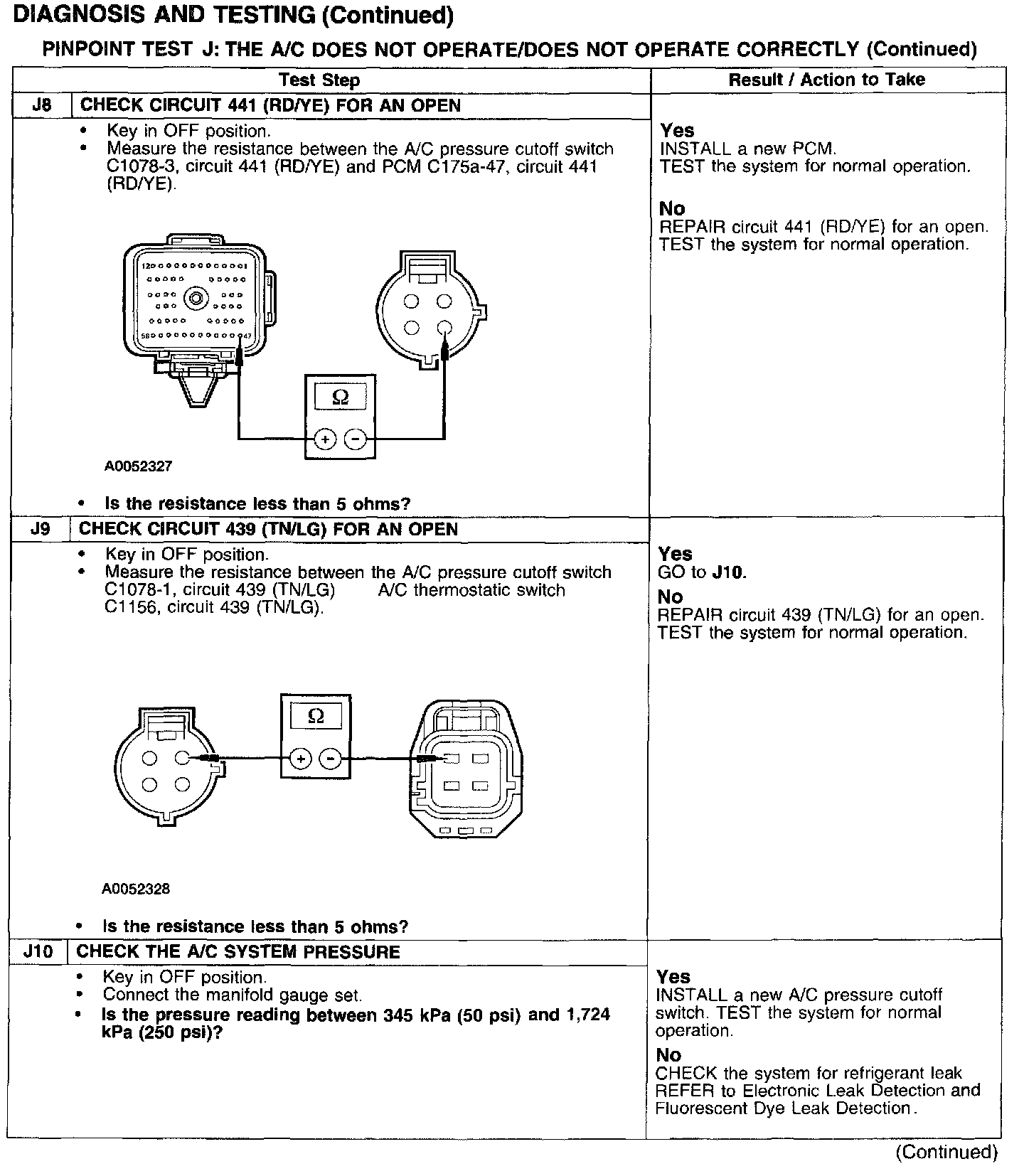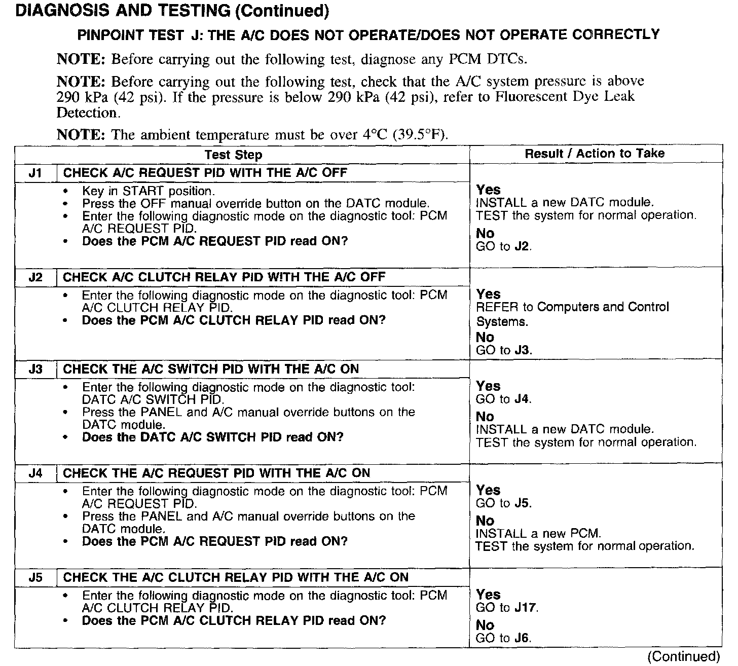 PINPOINT TEST J: THE A/C DOES NOT OPERATE/DOES NOT OPERATE CORRECTLYTest J1-J5: