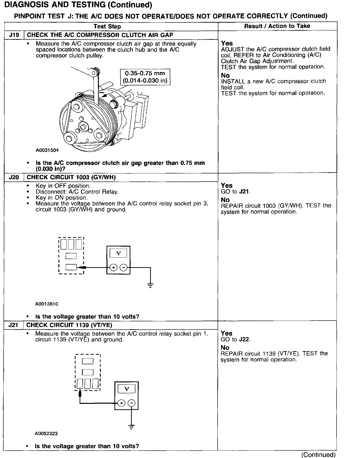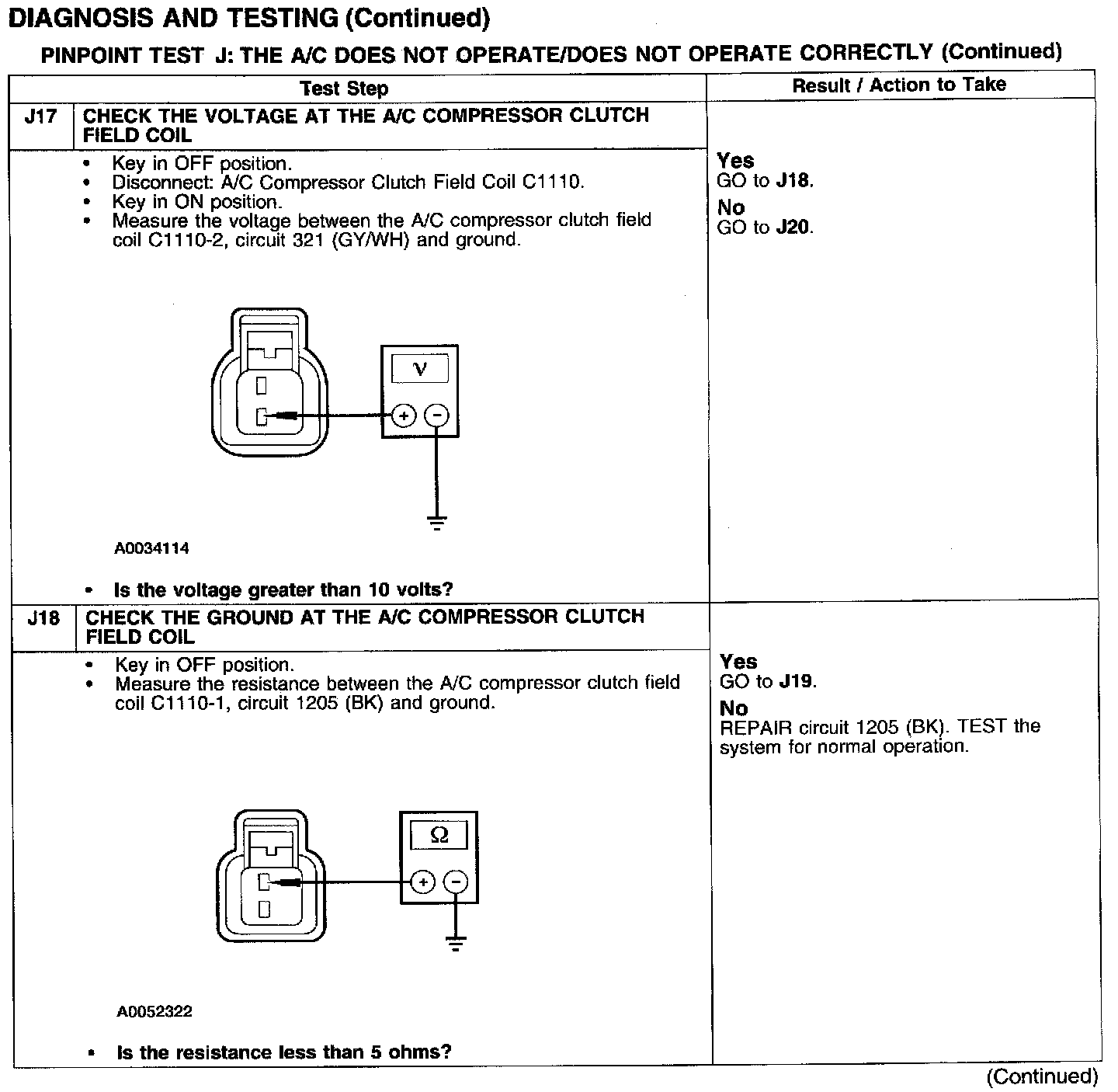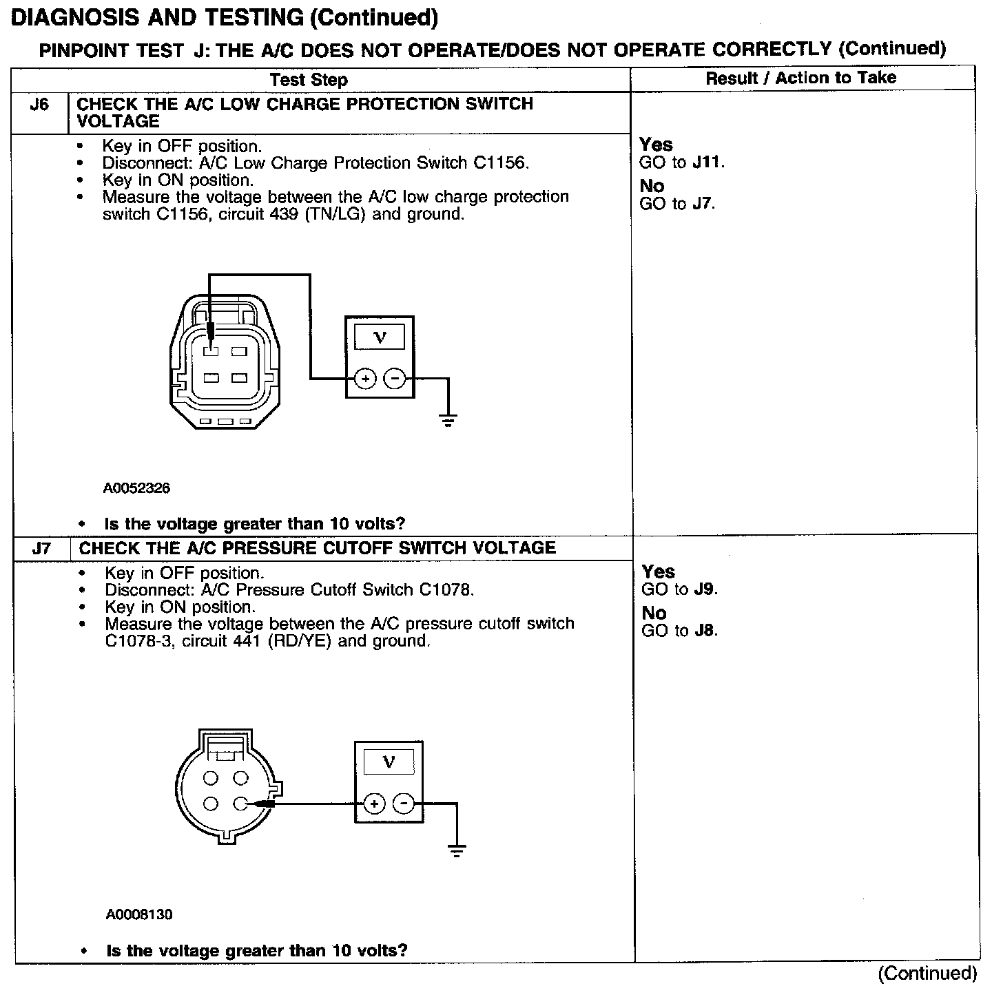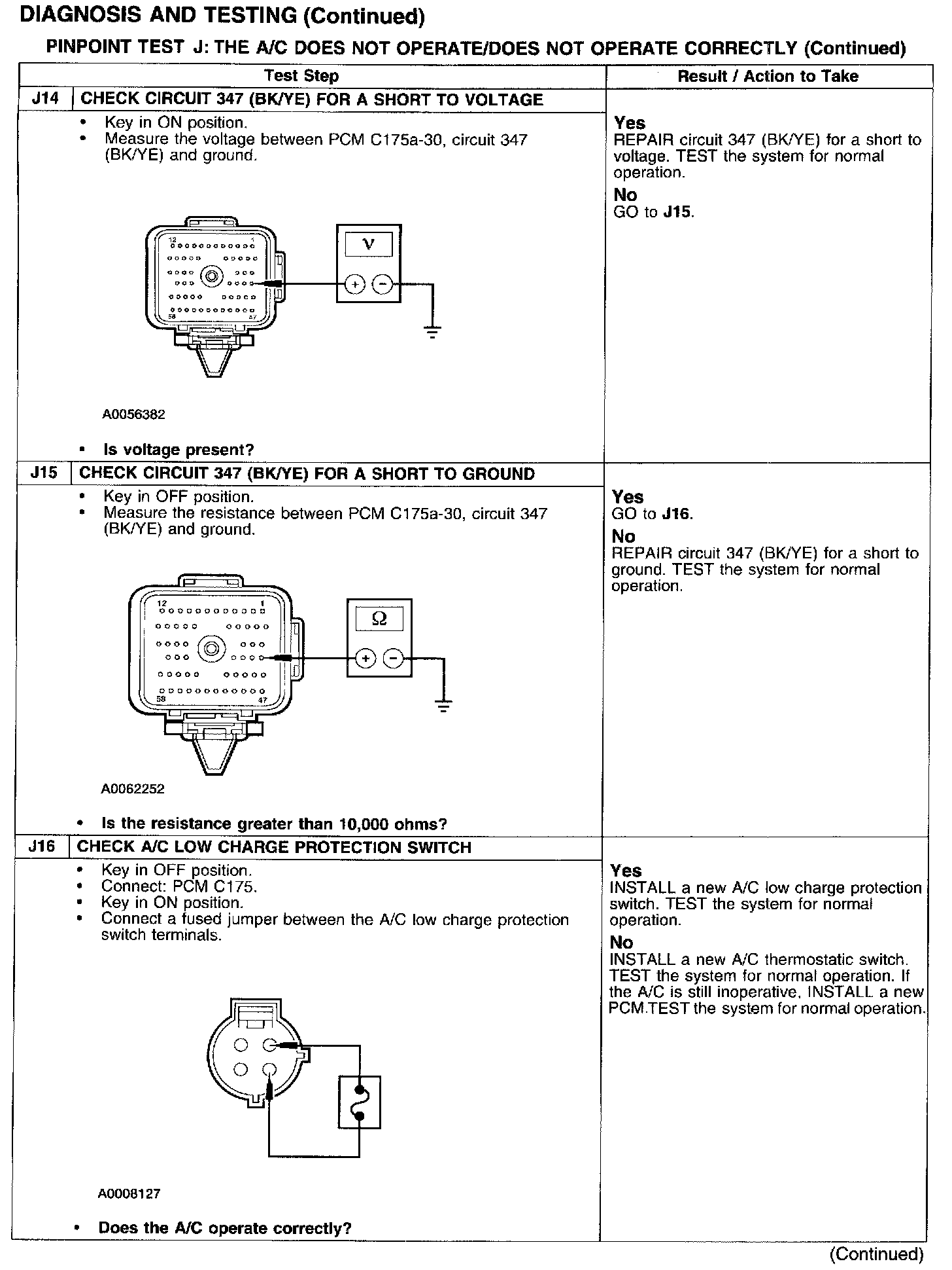 PINPOINT TEST J: THE A/C DOES NOT OPERATE/DOES NOT OPERATE CORRECTLYTest J1-J5: