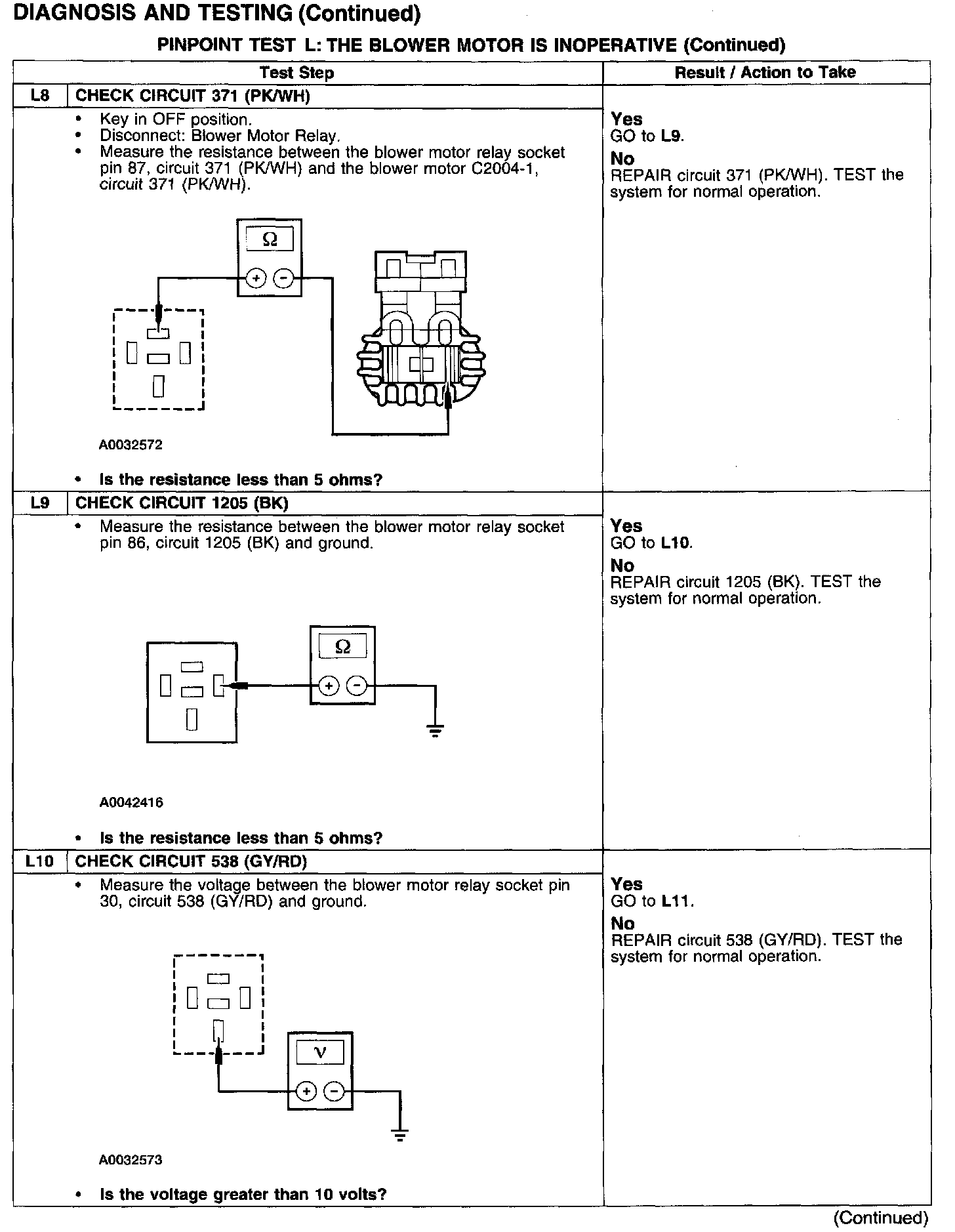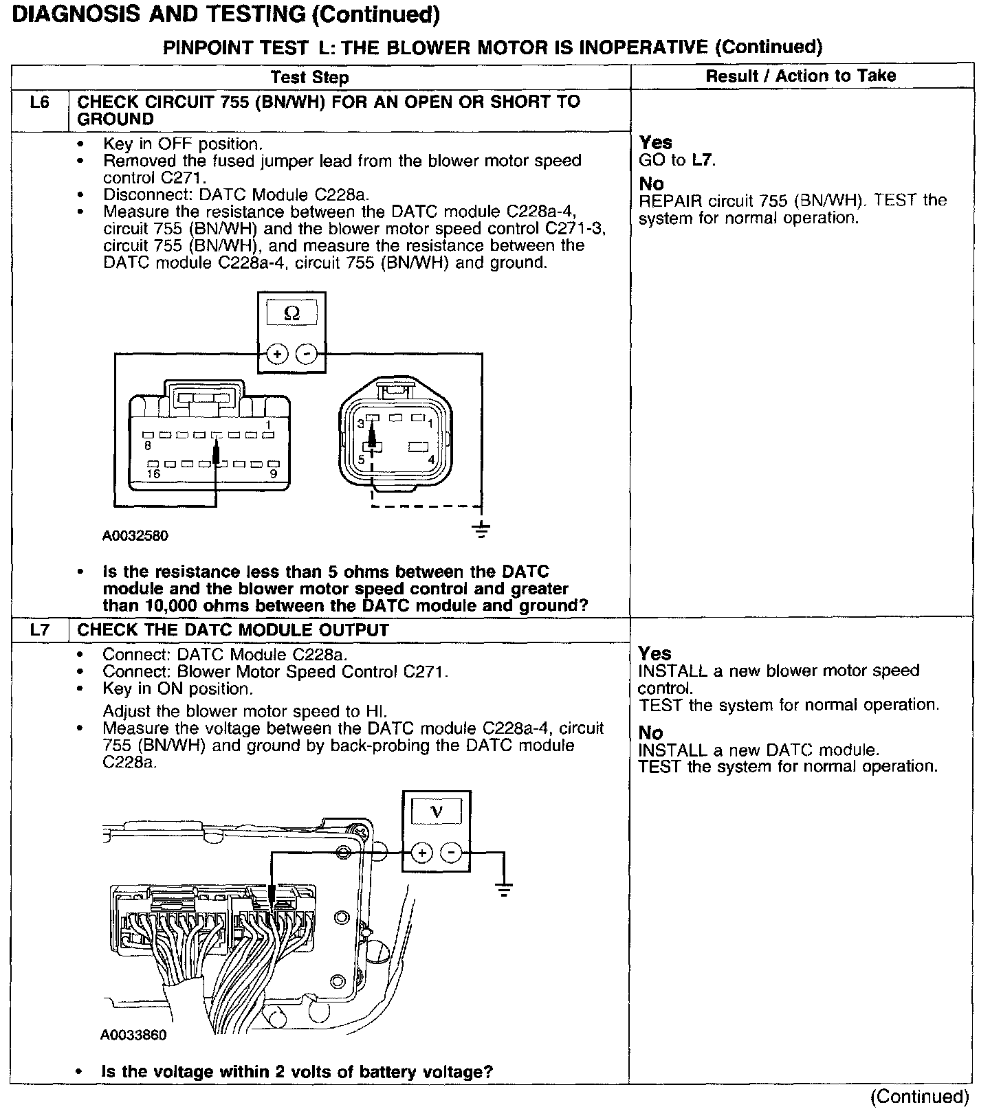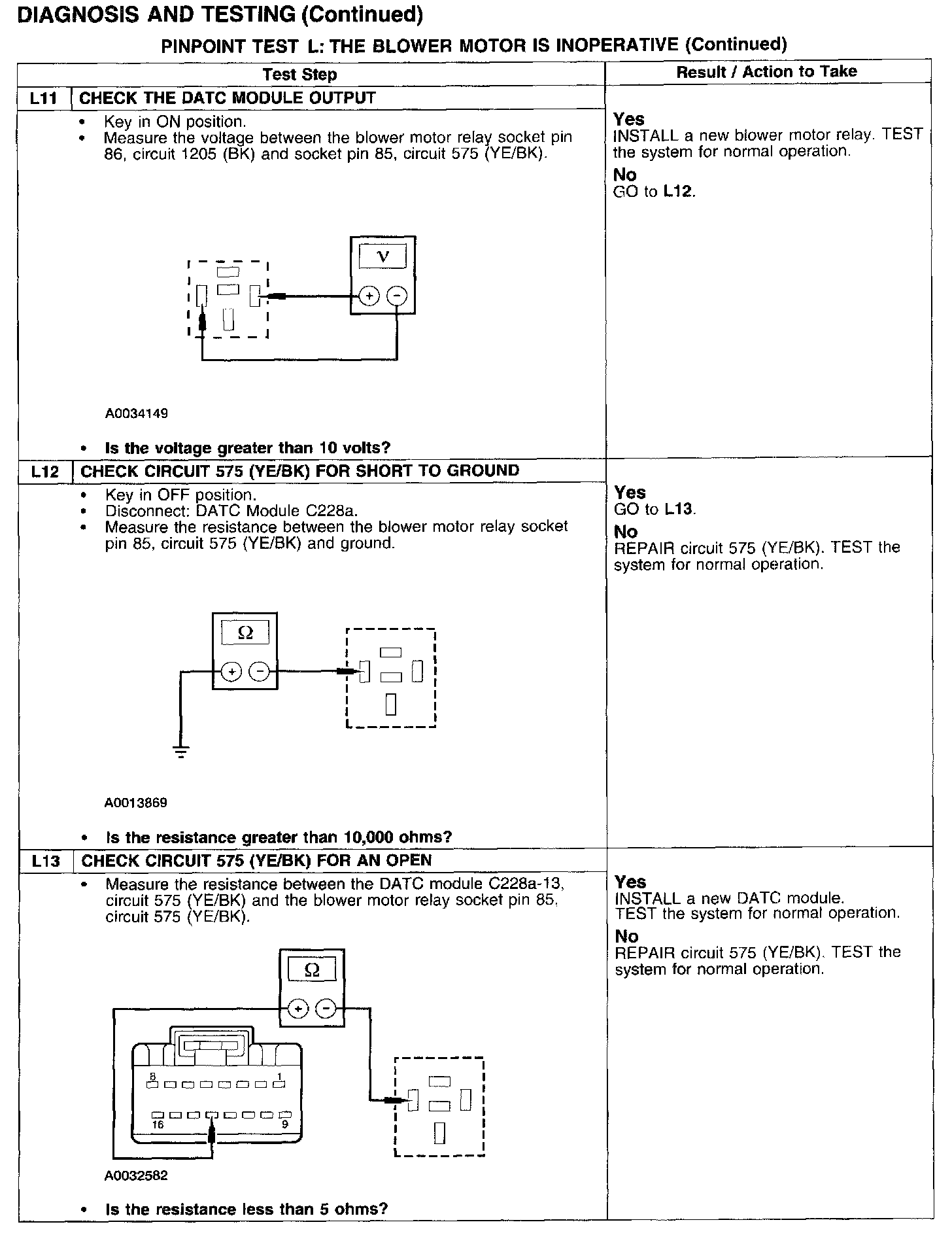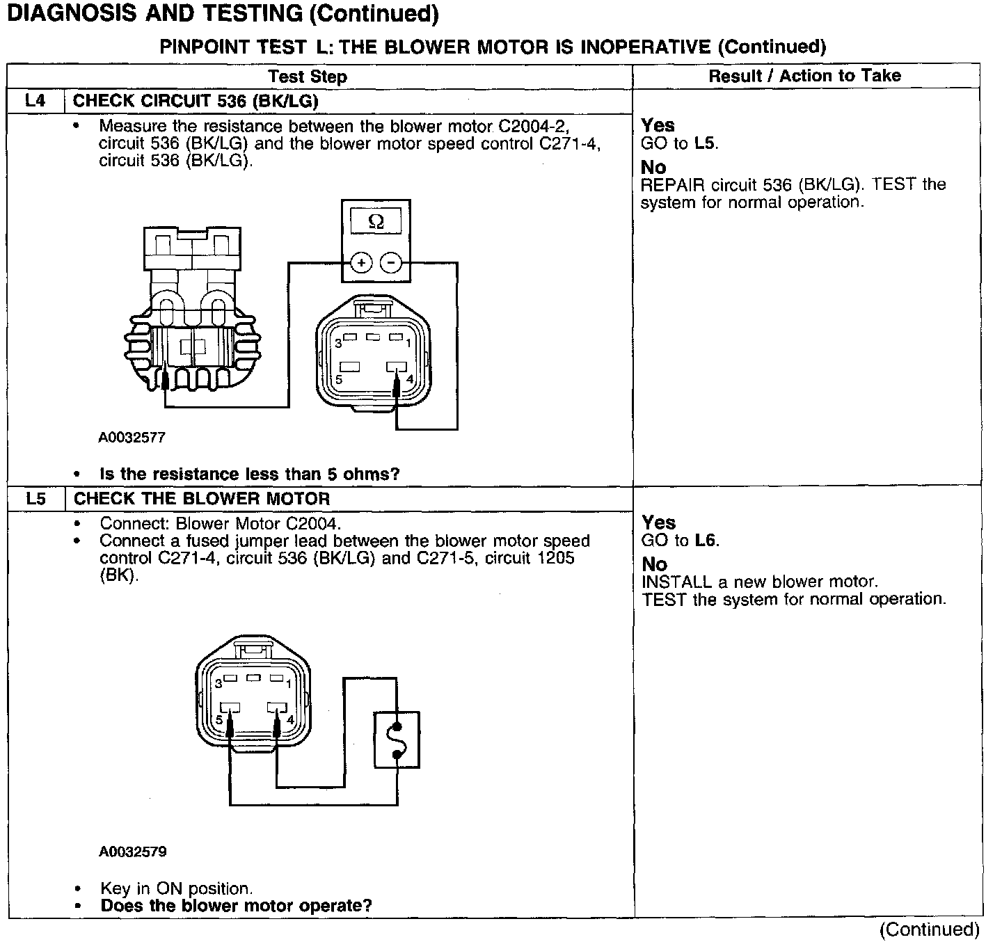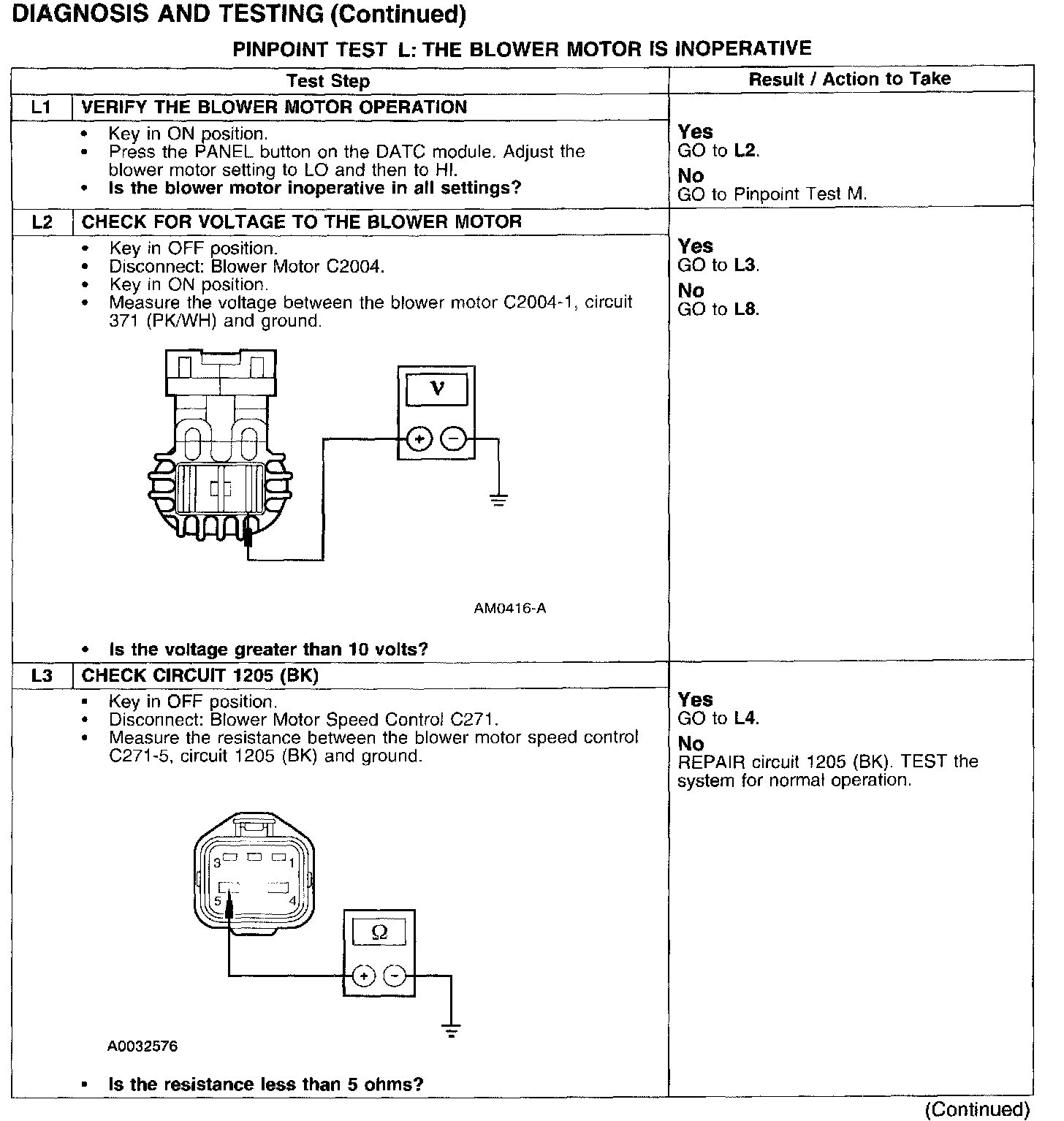 PINPOINT TEST L: THE BLOWER MOTOR IS INOPERATIVETest L1-L3: