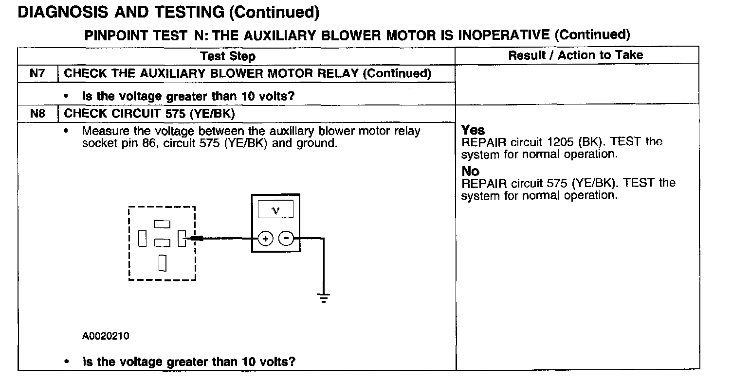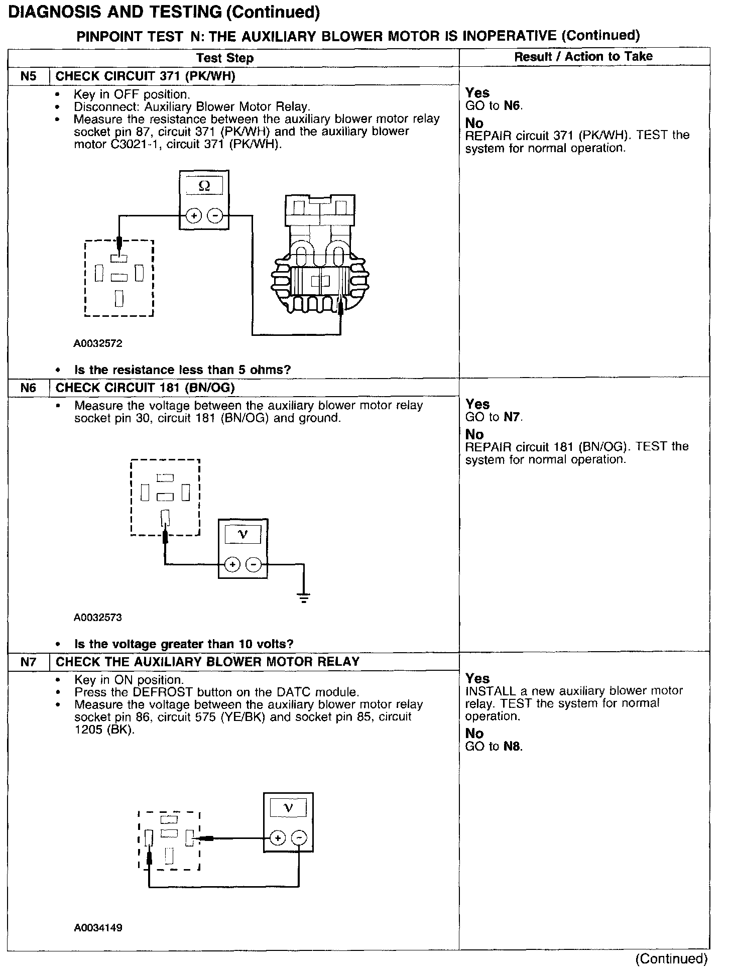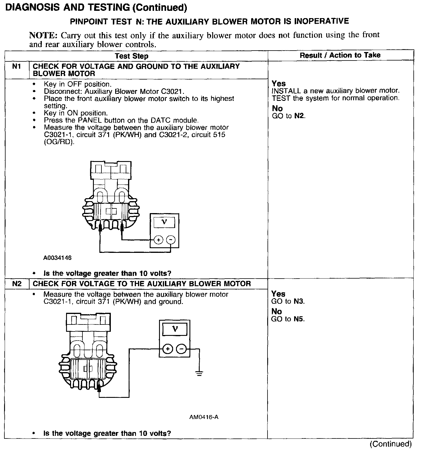 PINPOINT TEST N: THE AUXILIARY BLOWER MOTOR IS INOPERATIVETest N1-N2: