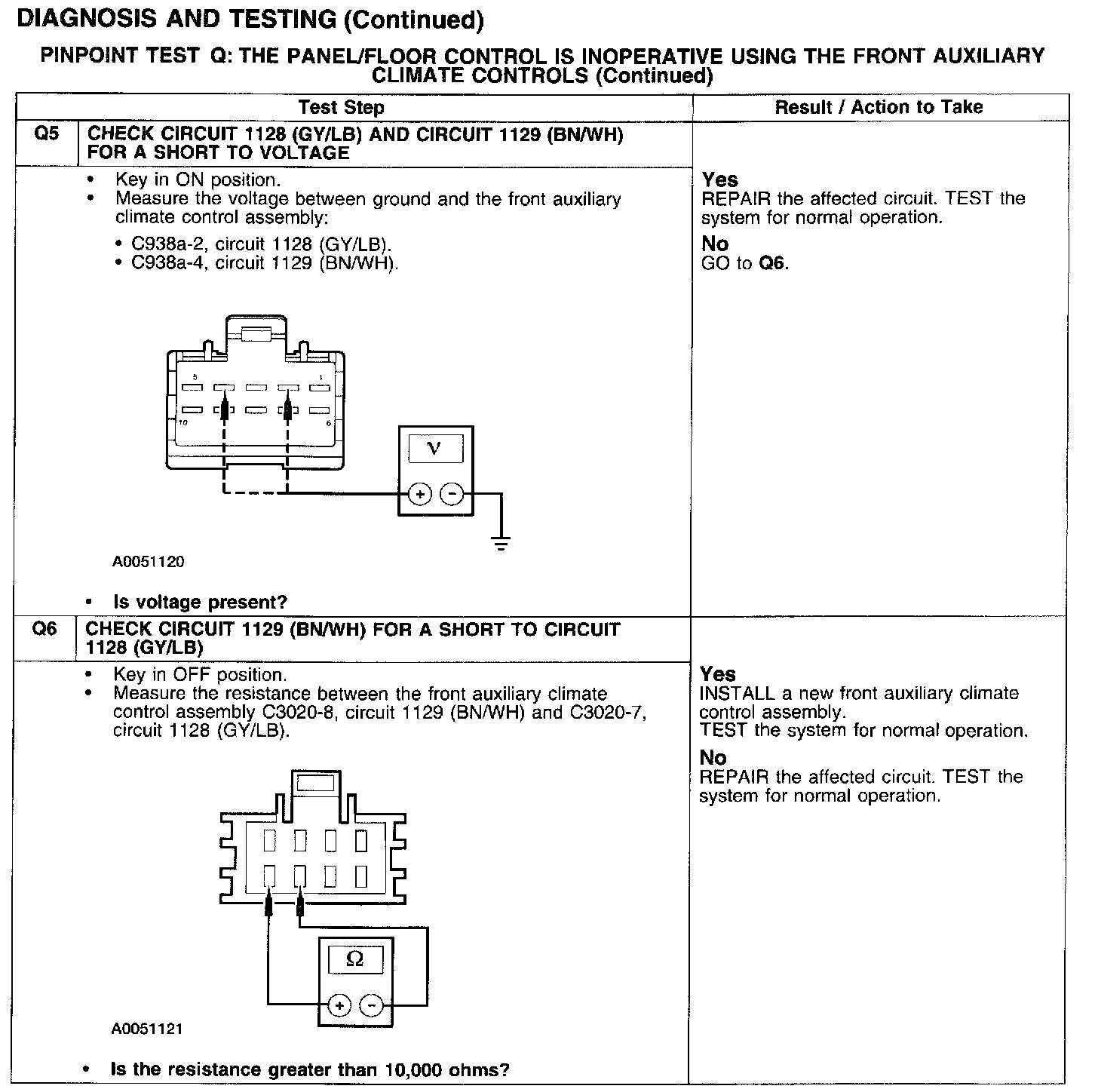 PINPOINT TEST Q: THE PANEL/FLOOR CONTROL IS INOPERATIVE USING THE FRONT AUXILIARY CLIMATE CONTROLSTest Q1-Q2: